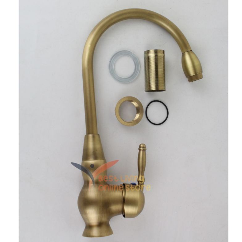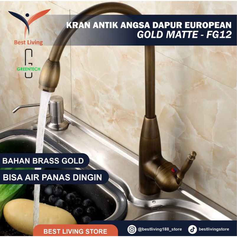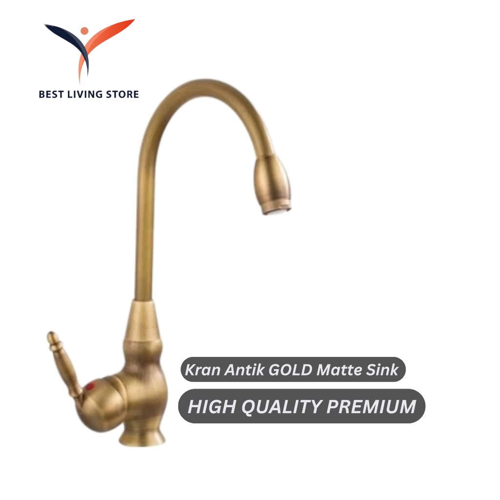 Kran Antik GOLD Matte Sink Panas Dingin Keran Air Dapur Angsa European
