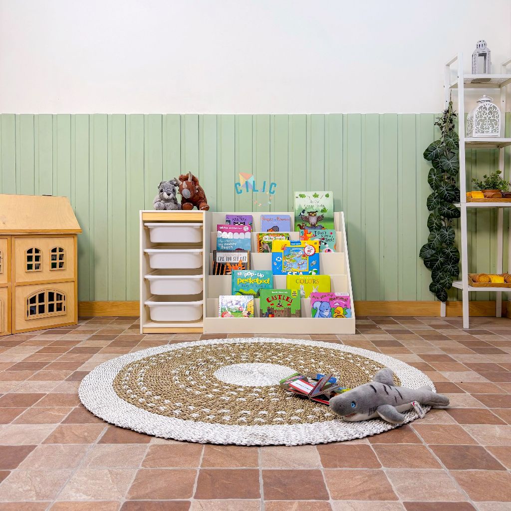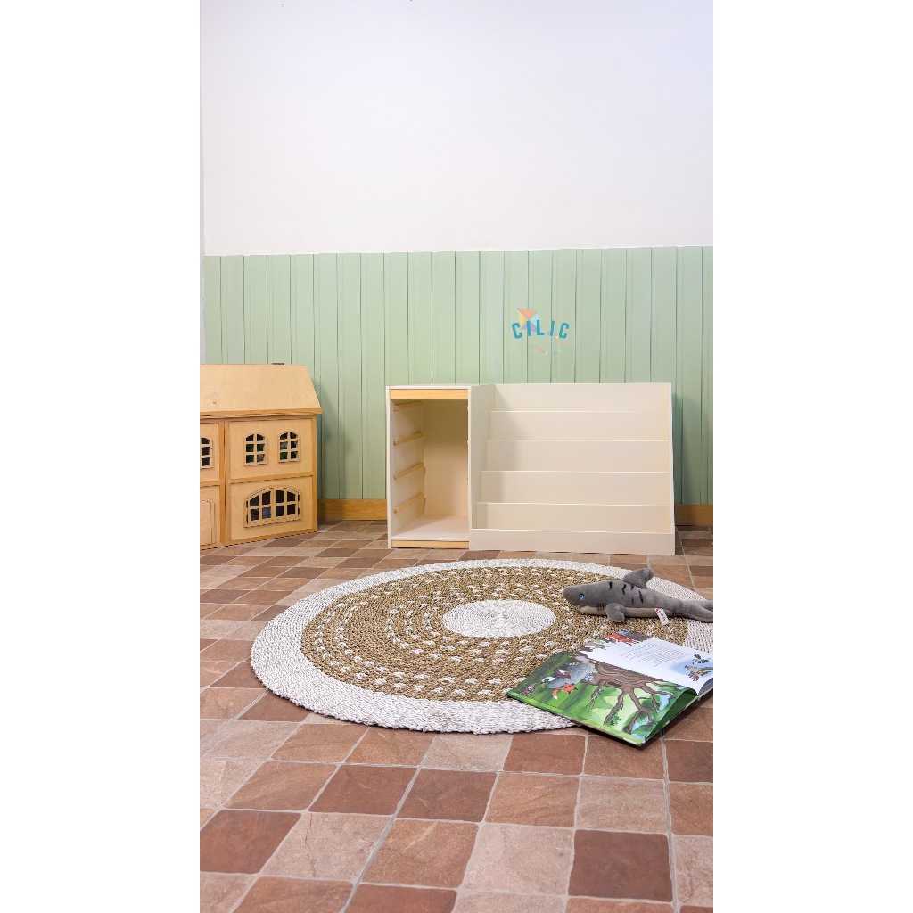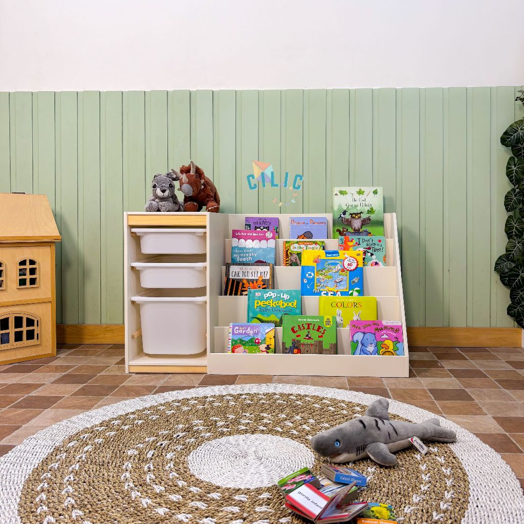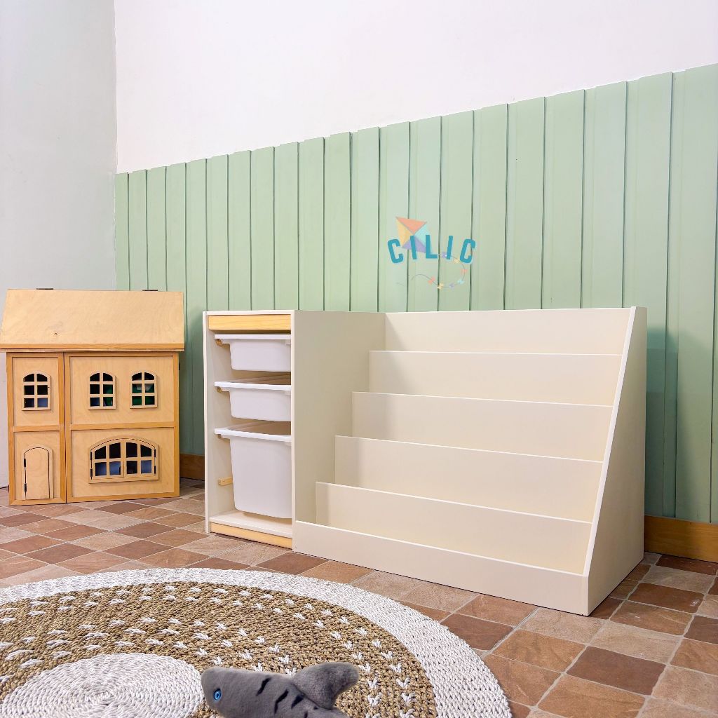 Cilic - Vesa kabinet rak mainan anak kayu olahan dengan laci plastik 4 slot dan rak buku 5 susun - plastic drawer, bookshelf