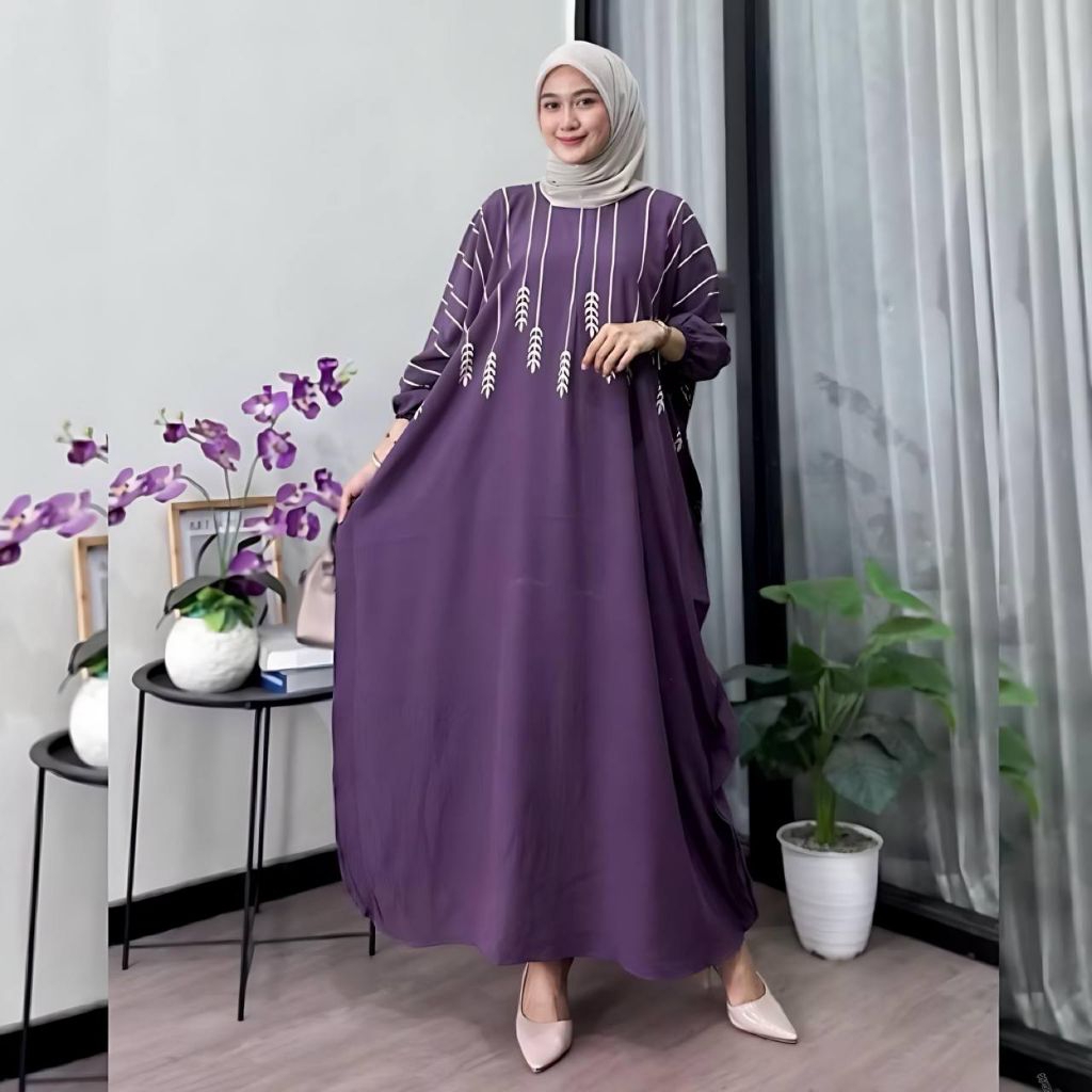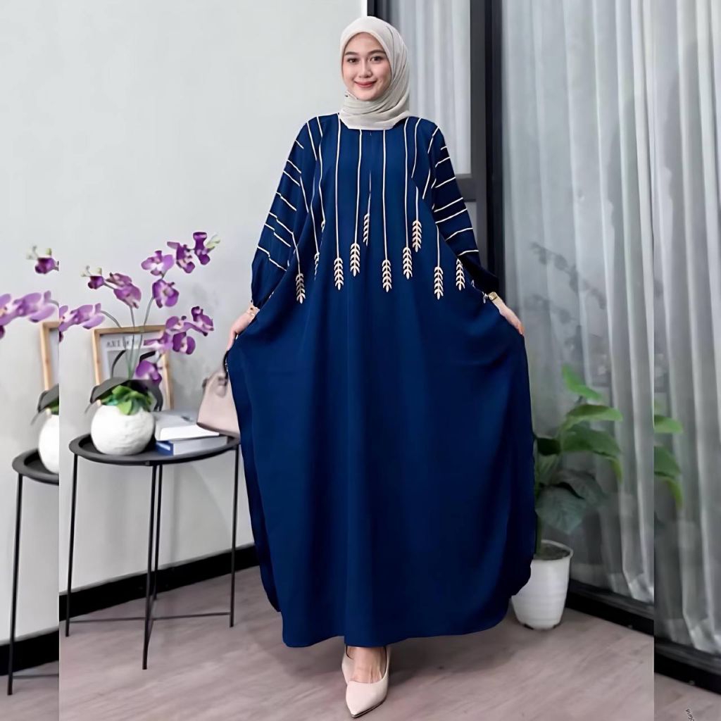 Gamis Kaftan Wanita Motif Poppy Bahan Rayon Premium Tebal Jumbo Resleting depan Busui