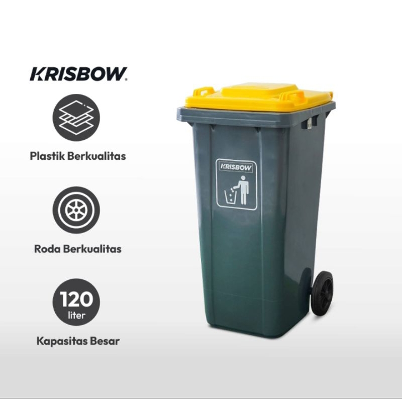 krisbow tempat sampah 120 ltr/240 ltr -abu-abu/kuning/hijau