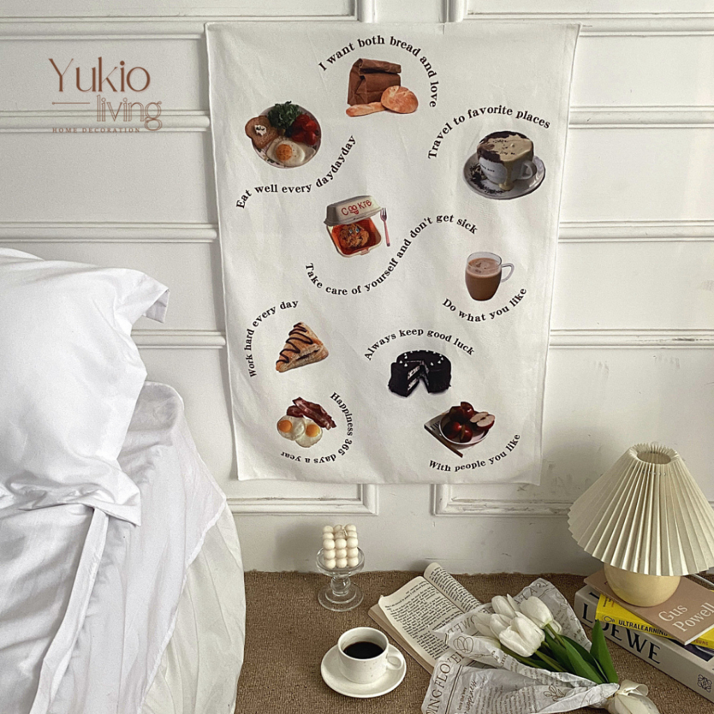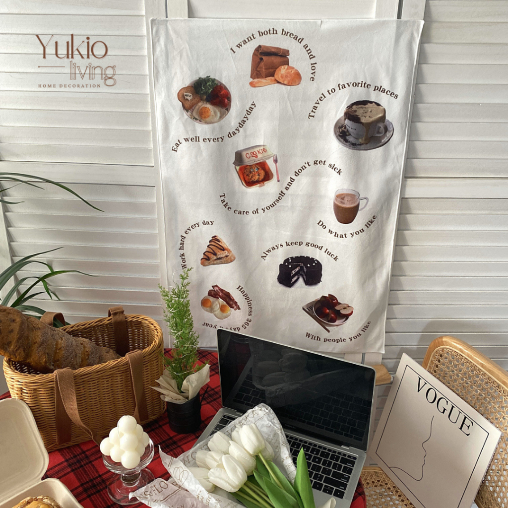 YUKIO Cafe Menu Tapestry - Poster Kain Besar Aesthetic Korea Dinding Home Decor Dekorasi Kamar