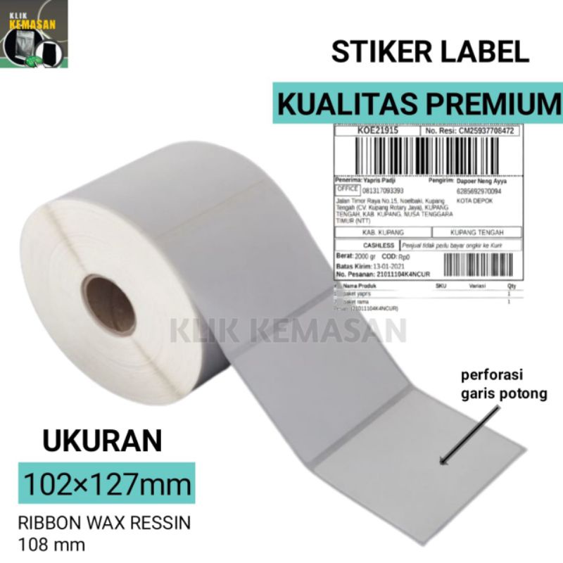 LABEL STIKER RESI JNE 1250 PCS 102×127 PLUS RIBBON/BARCODE STICKER JNE
