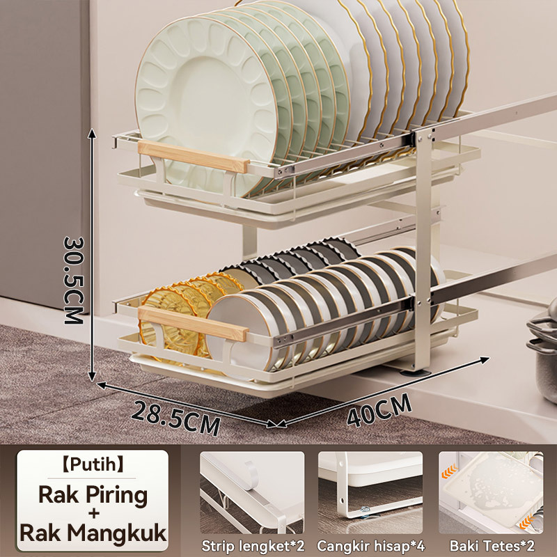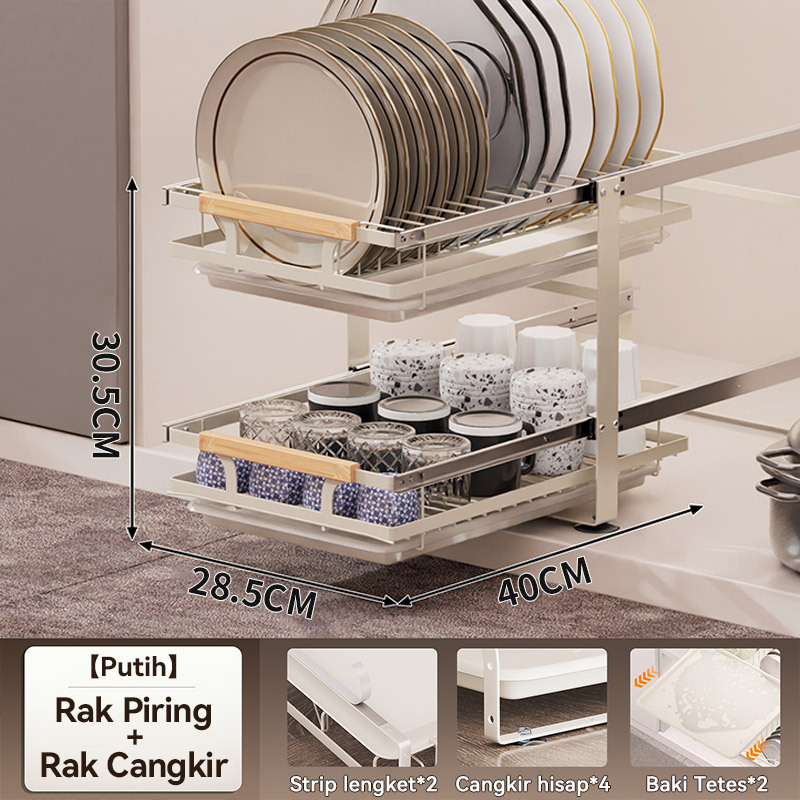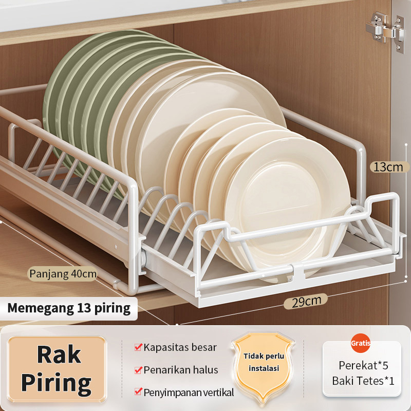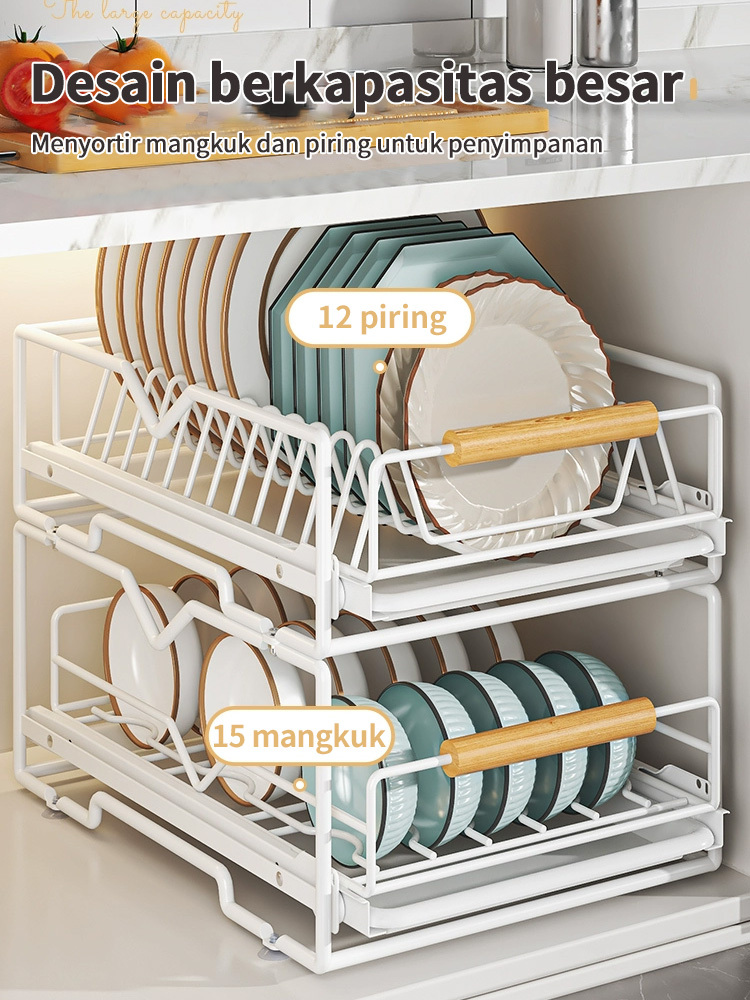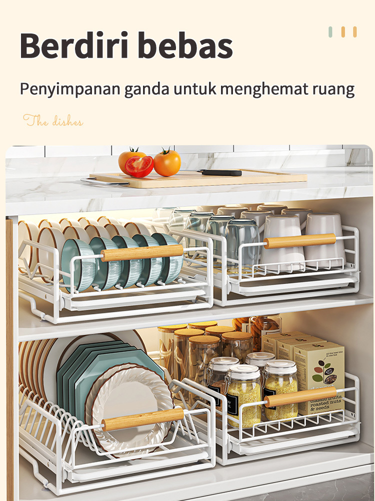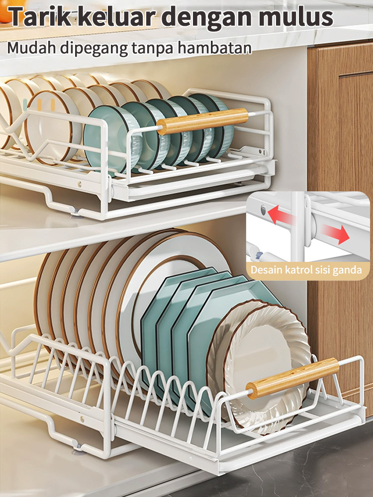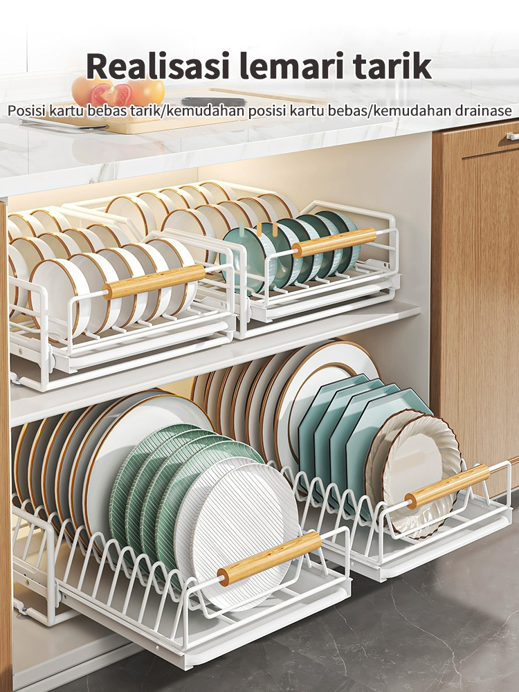 Rak Piring Pengering Piring Lemari Dapur Tarik Keluar Rak Piring Penyelenggara Rak Penyimpanan