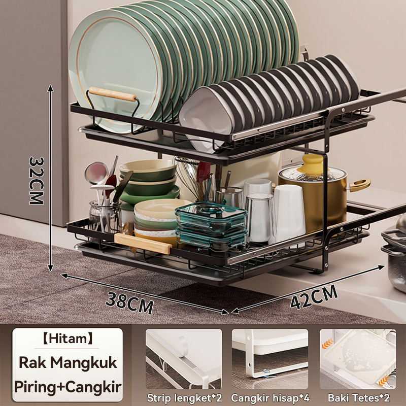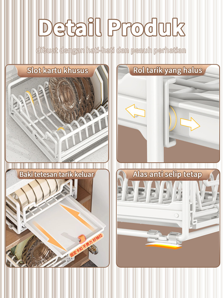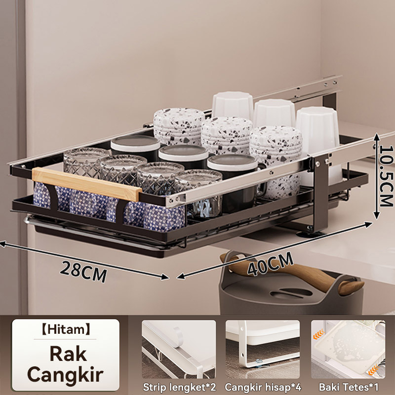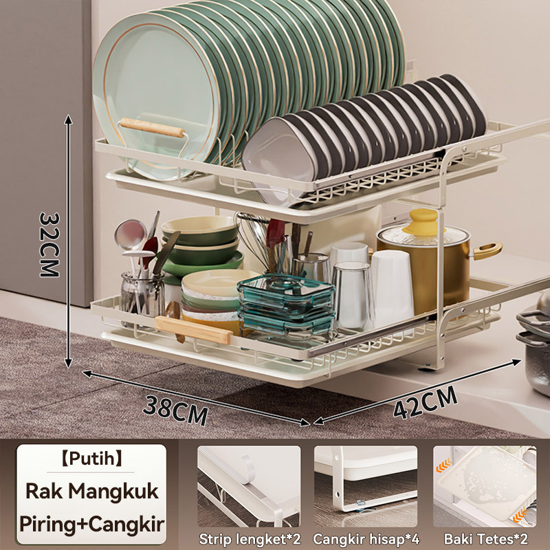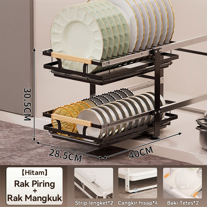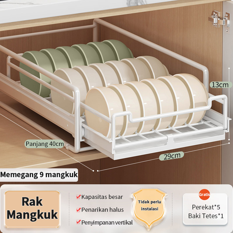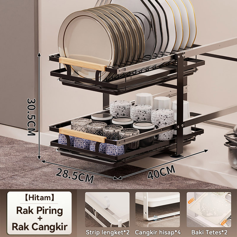 Rak Piring Pengering Piring Lemari Dapur Tarik Keluar Rak Piring Penyelenggara Rak Penyimpanan
