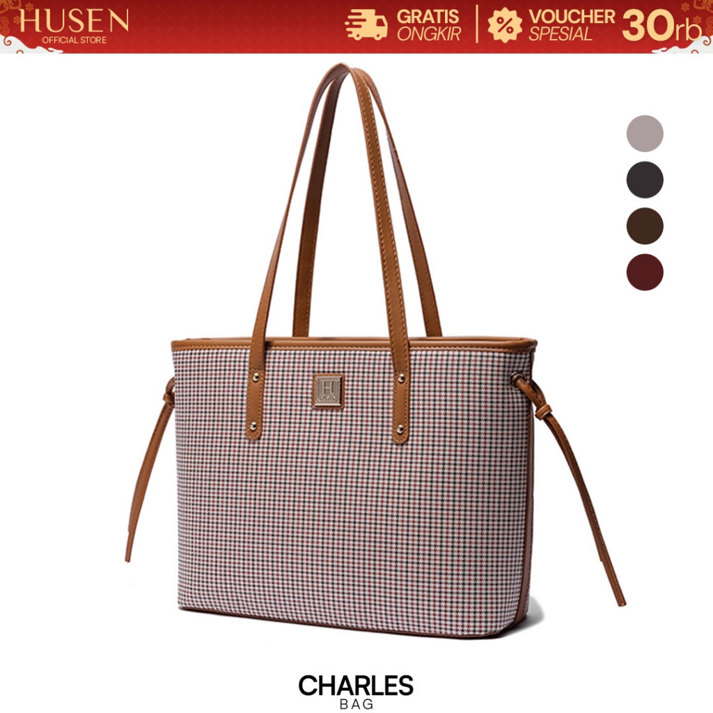 [SPECIAL PRICE] HUSEN Totebag Wanita Ashley Charles Tas Kantor Jinjing Zipper Shoulder Bag Tas Kondangan Elegan