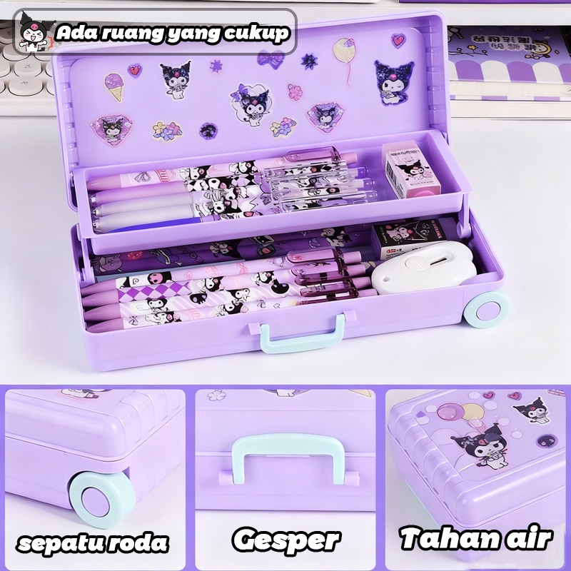 [Penjual Lokal] Tempat Pensil Stiker Kartun DIY Kotak Alat Kotak pensil ukuran besar Tulis Large Capacity Kasus Troli Kotak Alat Tulis Lucu stiker Pensil Kotak