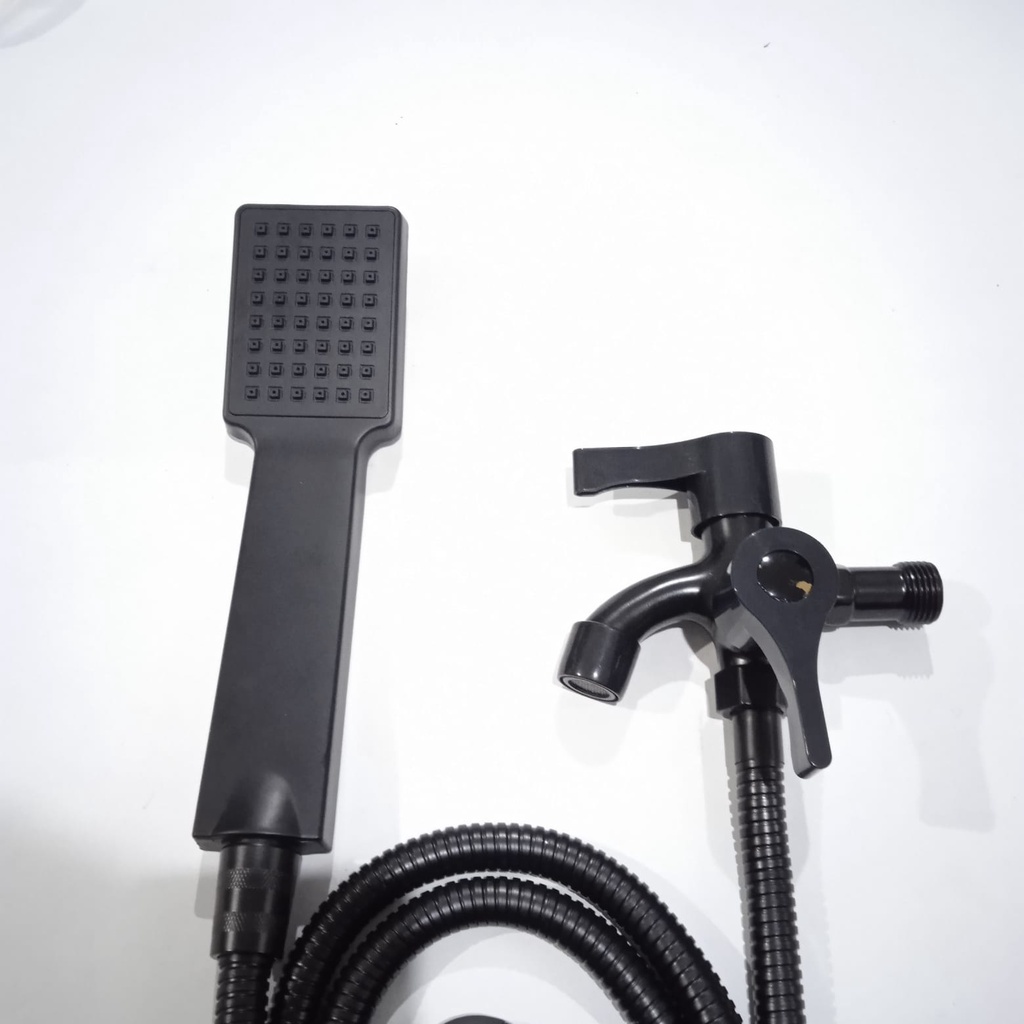 Paket Hand Shower KOTAK BULAT HITAM Hand Shower Mandi Set Semprotan Shower Mandi Dan Kran Cabang BLACK