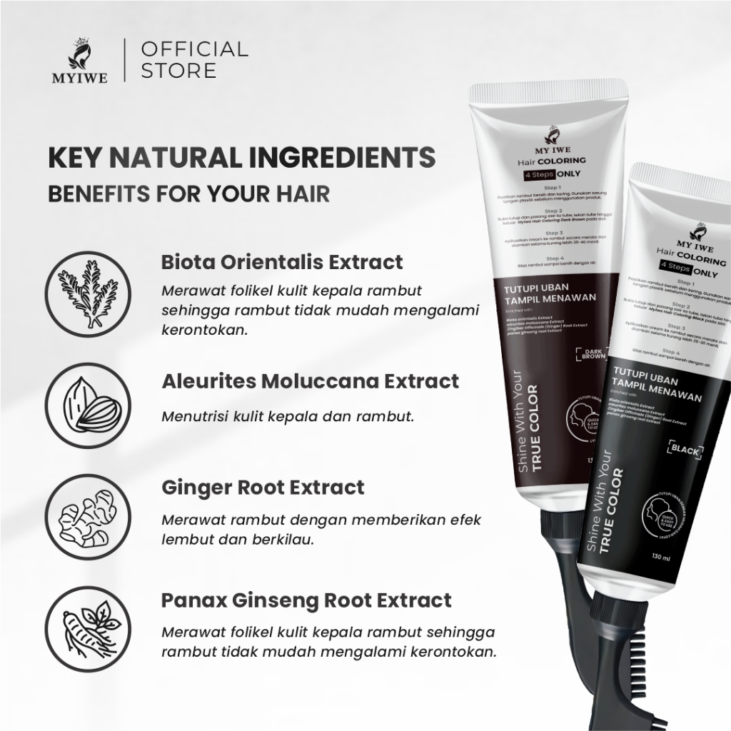Myiwe Hair Coloring Sisir / Tube Penghilang Rambut Beruban - Dark Brown FREE SISIR
