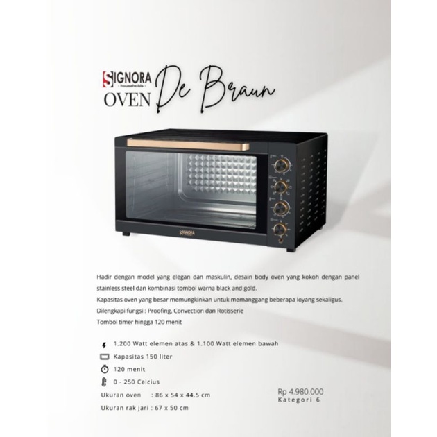 Signora Oven De Braun 150 liter/Oven De Braun Signora/Oven Listrik/Oven Signora