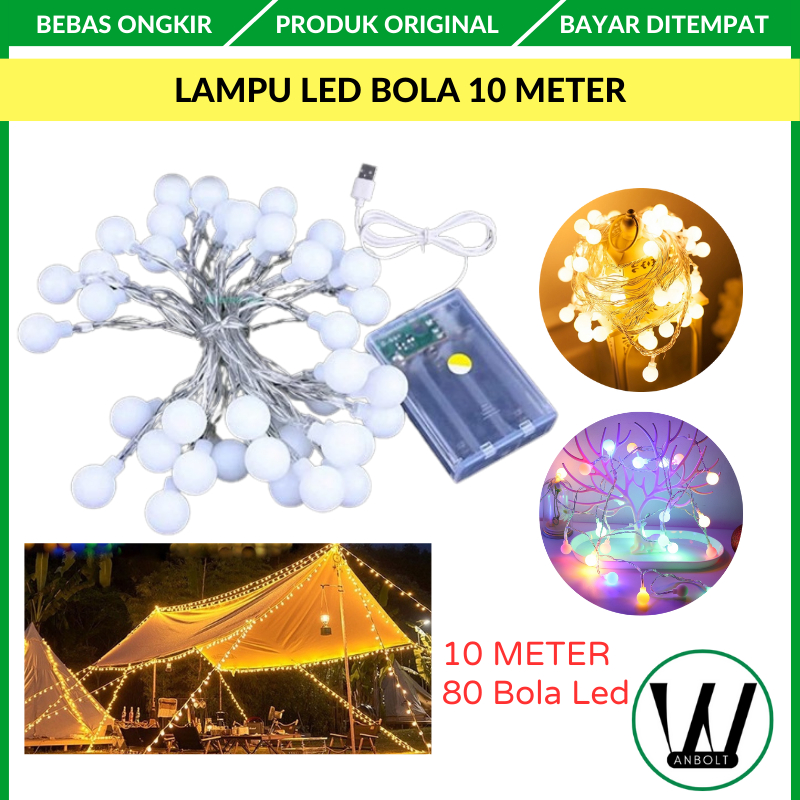Lampu LED Bola Anggur 80 LED 10 Meter USB + Baterai / Lampu Tumblr Bola Anggur 10 Meter Outdoor Tahan Air