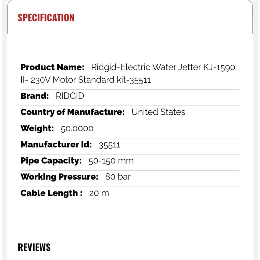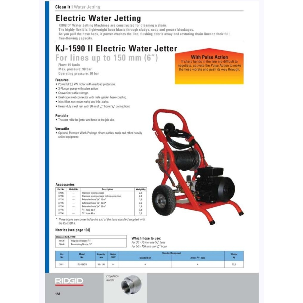 35511Ridgid-Electric Water Jetter KJ-1590 II- 230V Motor Standard kit-35511