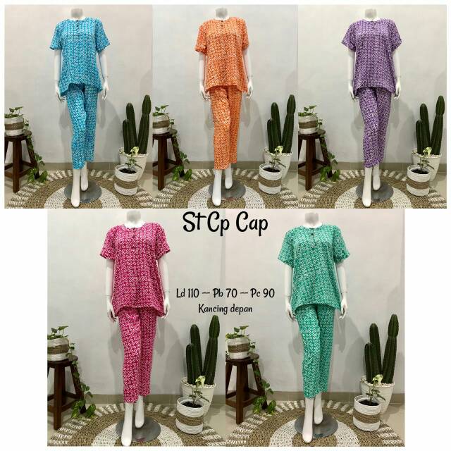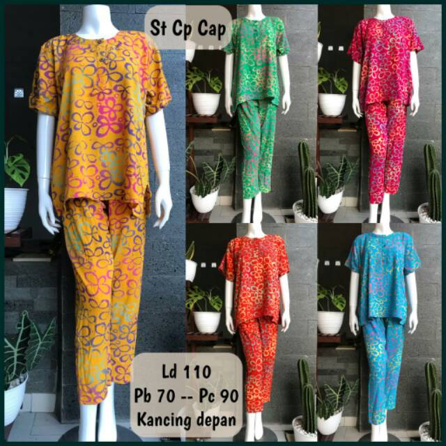 Stelan Babydoll Celana Panjang Batik Cap Ethnic Bunga Jumbo Ld110 Busui Friendly Baju Hamil Ecer