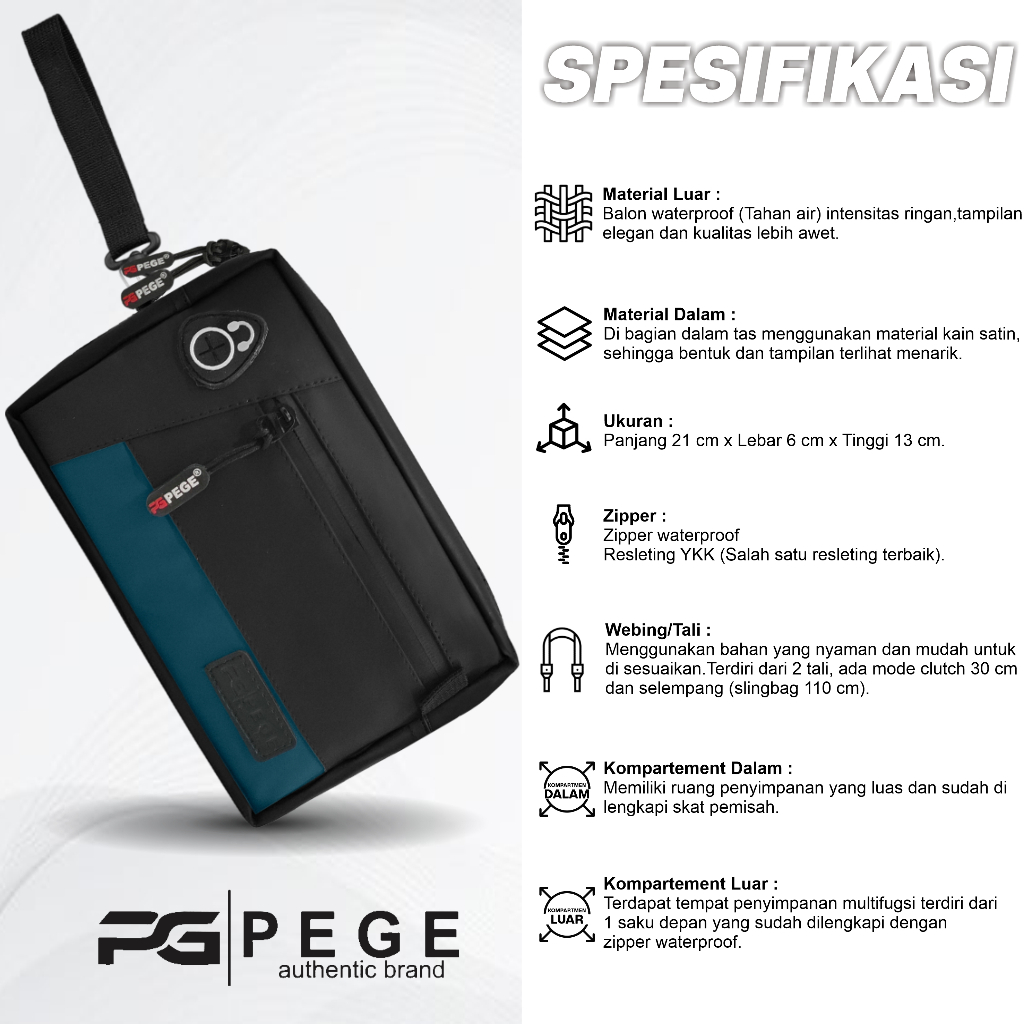 Tas Selempang Pria 3in1 Pege Vhero Slingbag Kombinasi Kasual Waterproof Anti Air - PG 9045