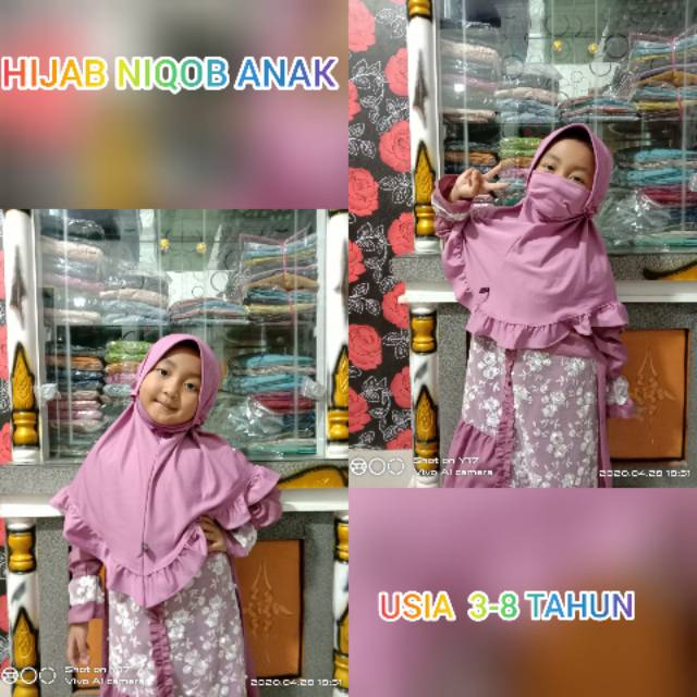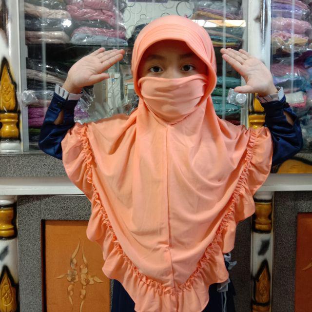 Hijab masker anak pad /bergo cadar anak/ niqob anak