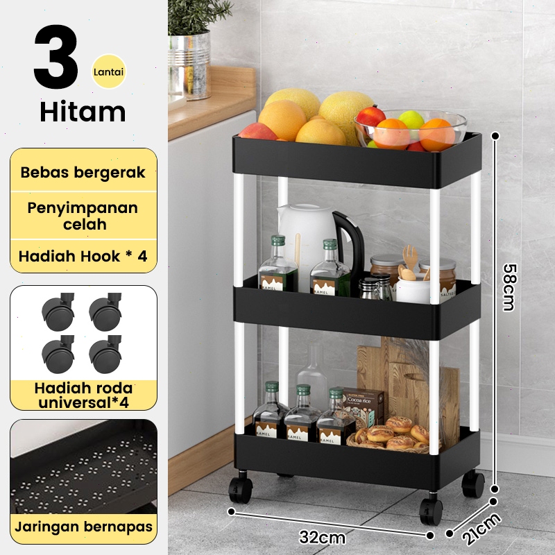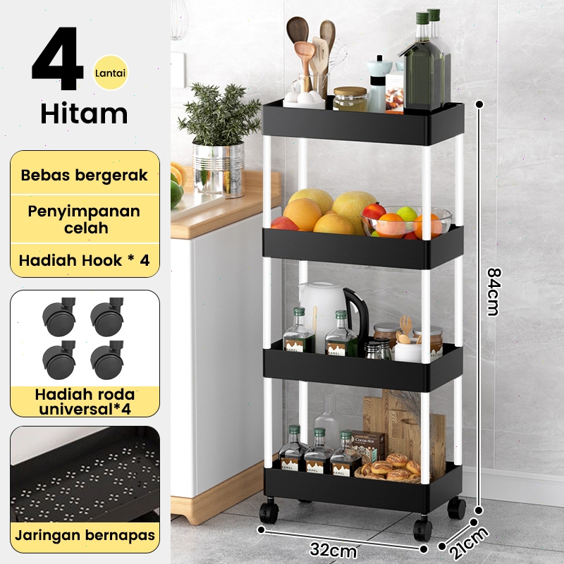 iHOME Square Rak Dapur Rak Troli Rak Susun Serbaguna 4 Tingkat Dengan Roda