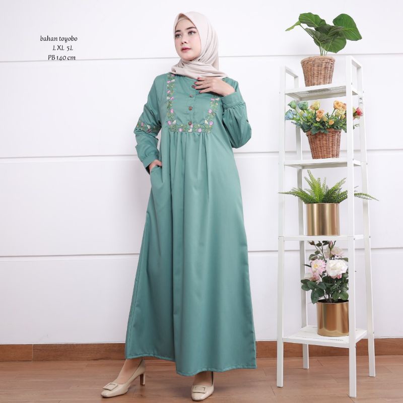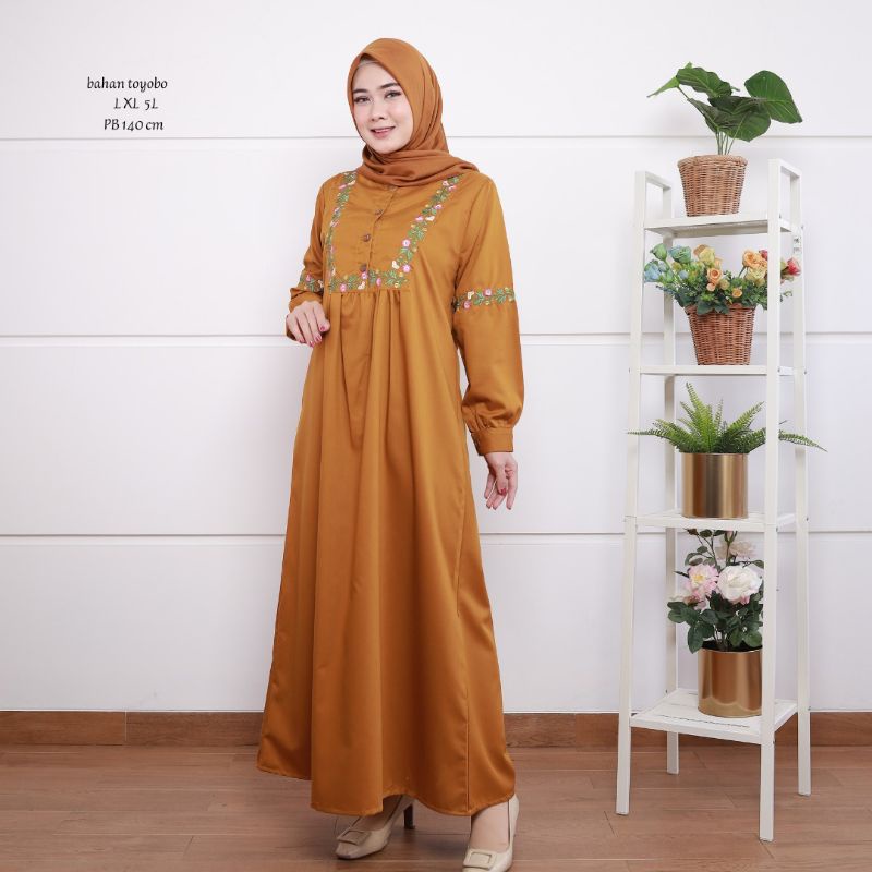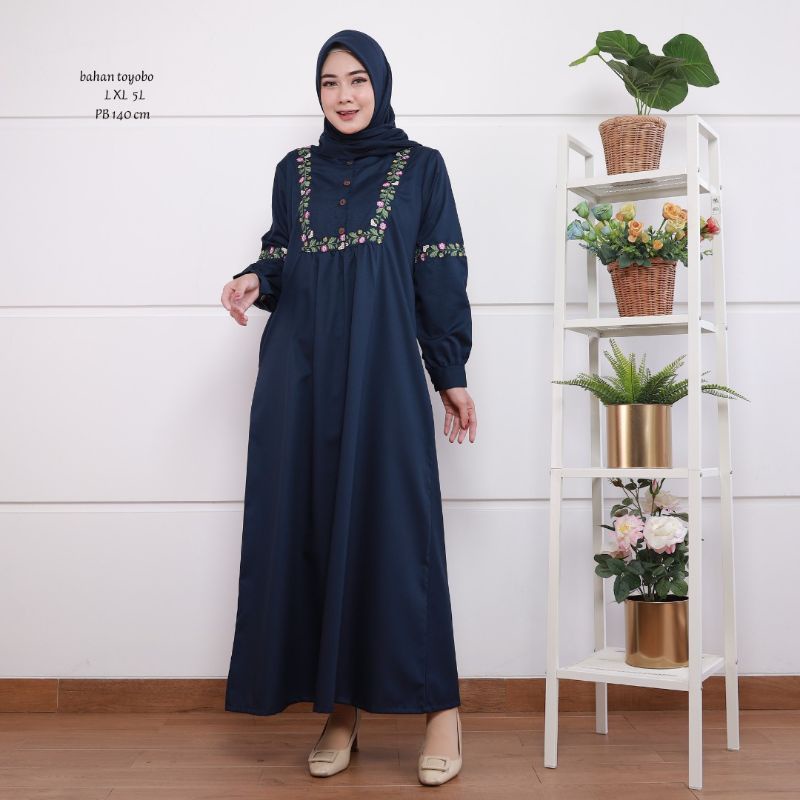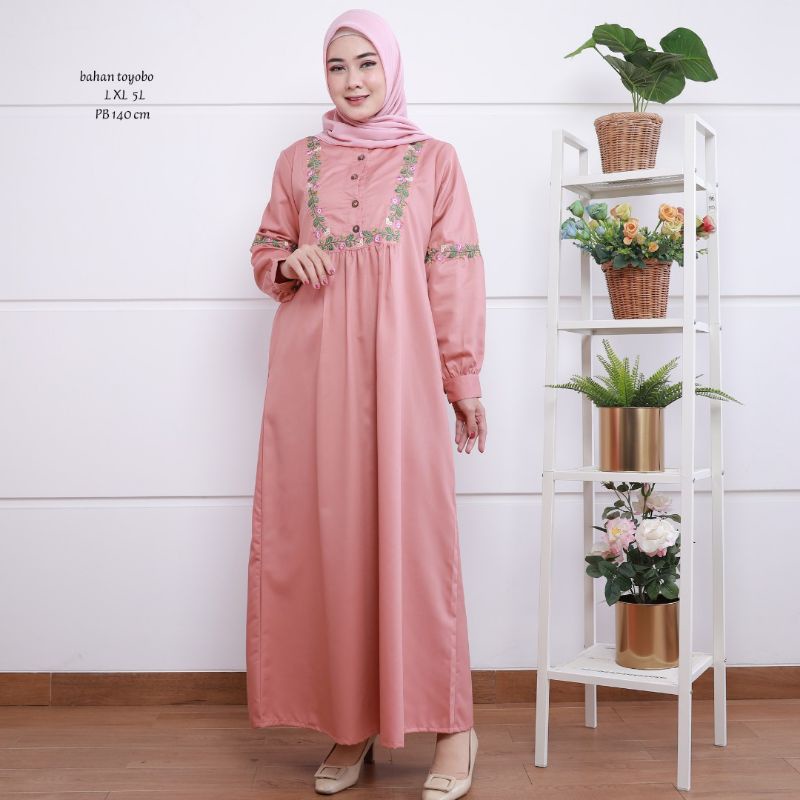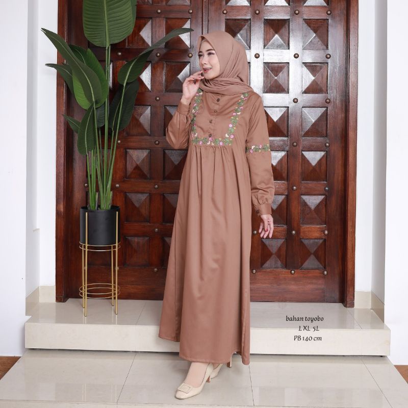 Gamis Bordir katun Toyobo Import/Dress/Baju muslim/fashion wanita/terbaru/terlaris /terpopuler/COD