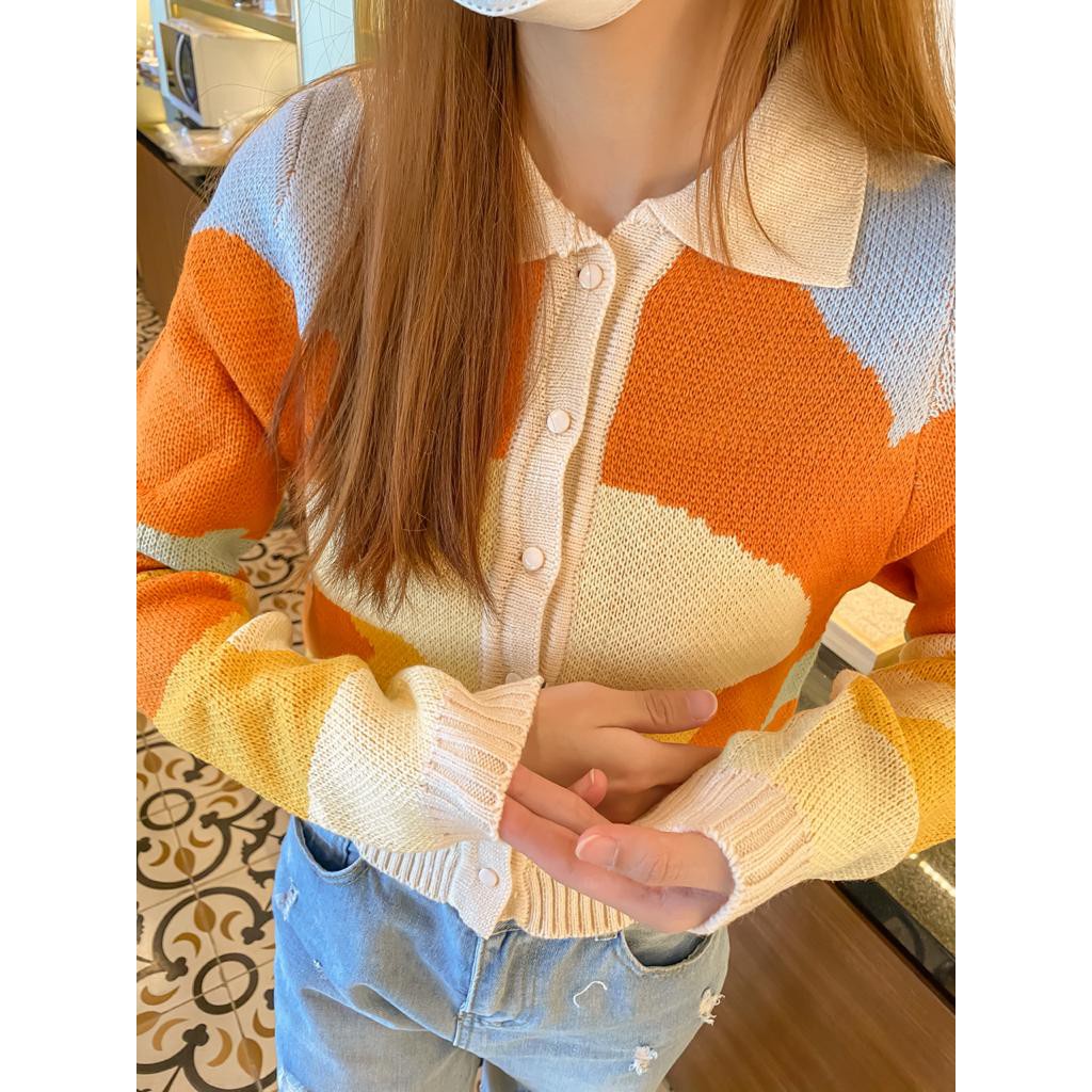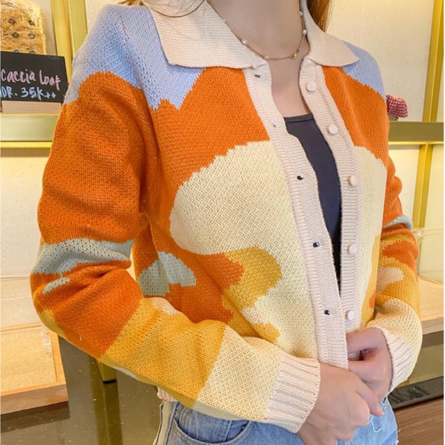 ABSTRACT ORANGE CARDI LISA CARDIGAN CROP RAJUT CARDIGAN KOREA KARDIGAN HYPE VINTAGE CARDIGAN PREMIUM QUALITY