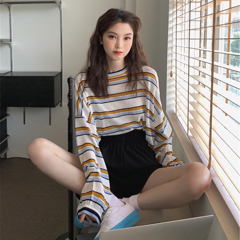 DOUBLE LINE COLLAR CROP LS TSHIRT OVERSIZE TEE KAOS LONGGAR KOREA KAOS OVERSIZE KAOS LENGAN PANJANG