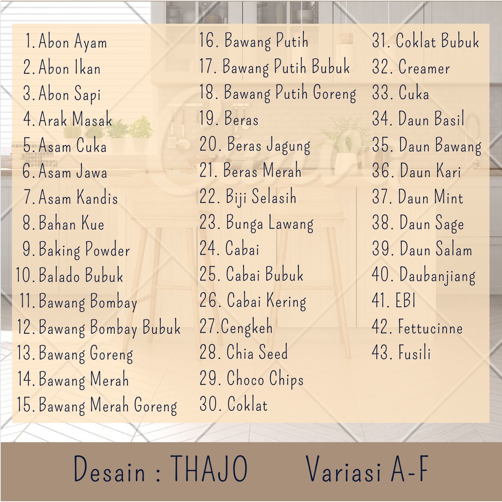 THAJO huruf G-K stiker dapur kitchen herbs botol toples bumbu estetik minimalis termurah