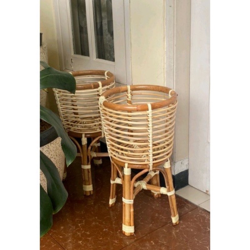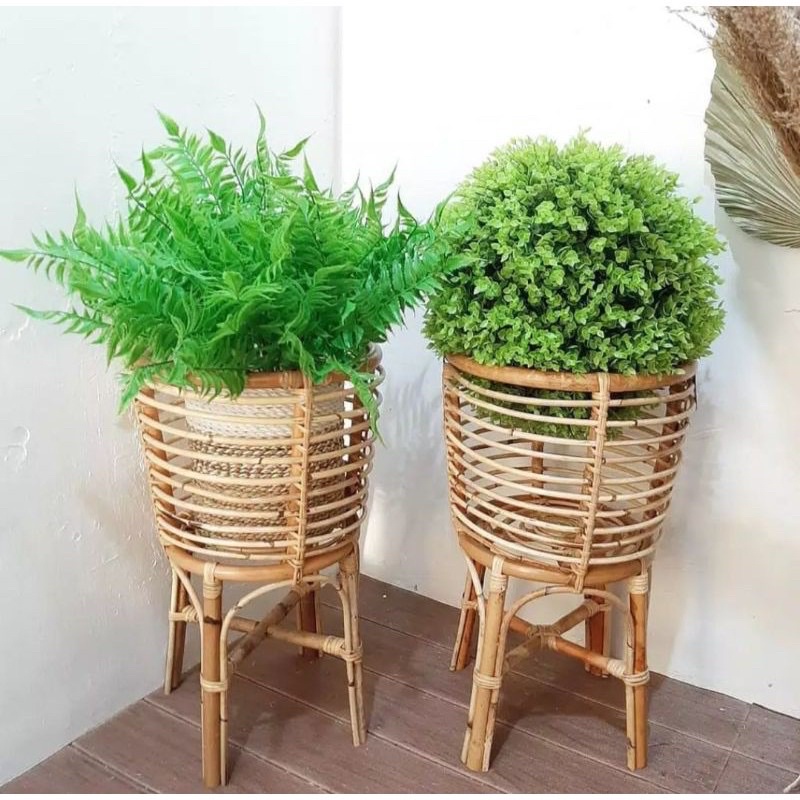 (SUDAH PERNIS) standing pot rotan alami/standing pot aesthetic/standing pot rotan aesthetic murah/standing pot 30cm tinggi 55cm/ vas bunga rotan