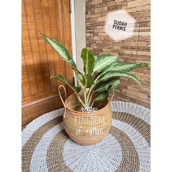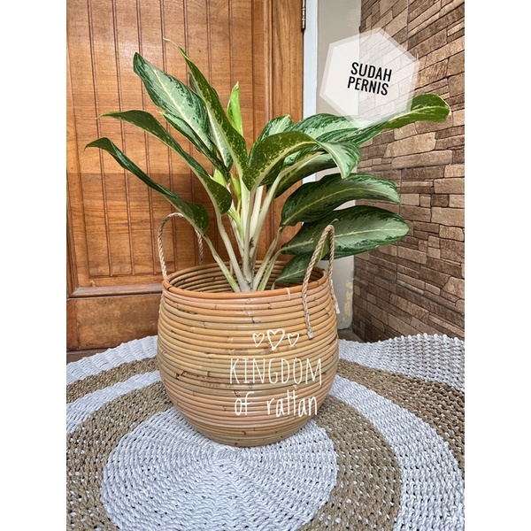 cover pot rotan alami aesthetic/cover pot aesthetic/pot rotan murah/pot rotan diameter 30cm/cover pot bulat/standing pot lucu