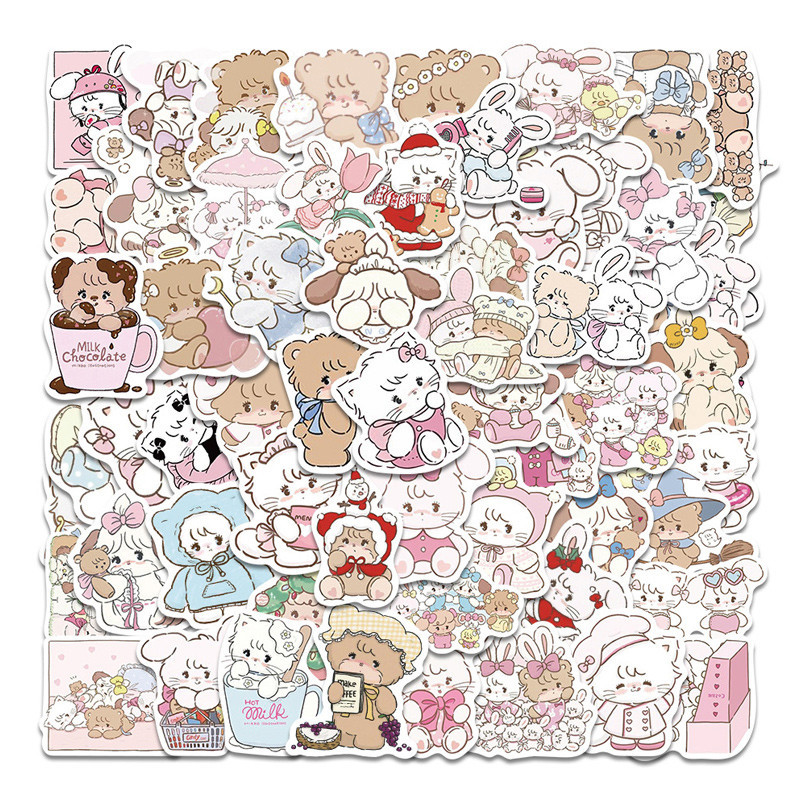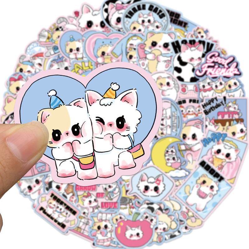 COD100Pcs Stiker Sanrio Kucing 3D Kartun Lucu Stiker Tahan Anti Air Gelas Warna Untuk Alat Tulis Impor -Yinmer