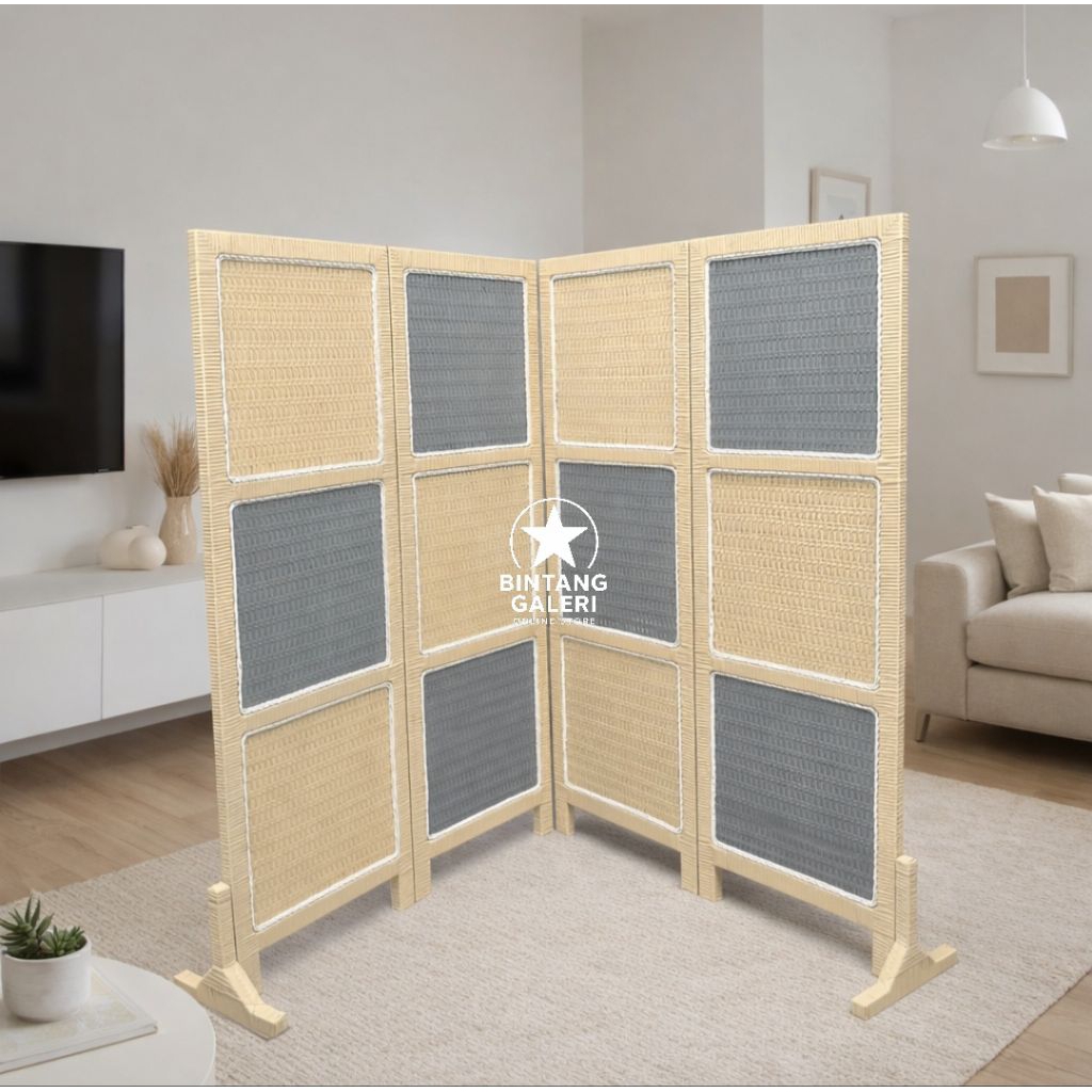 READY STOK Sketsel Pembatas Ruangan Rotan Sintetis Motif Kotak Sekat Ruangan Minimalis Murah