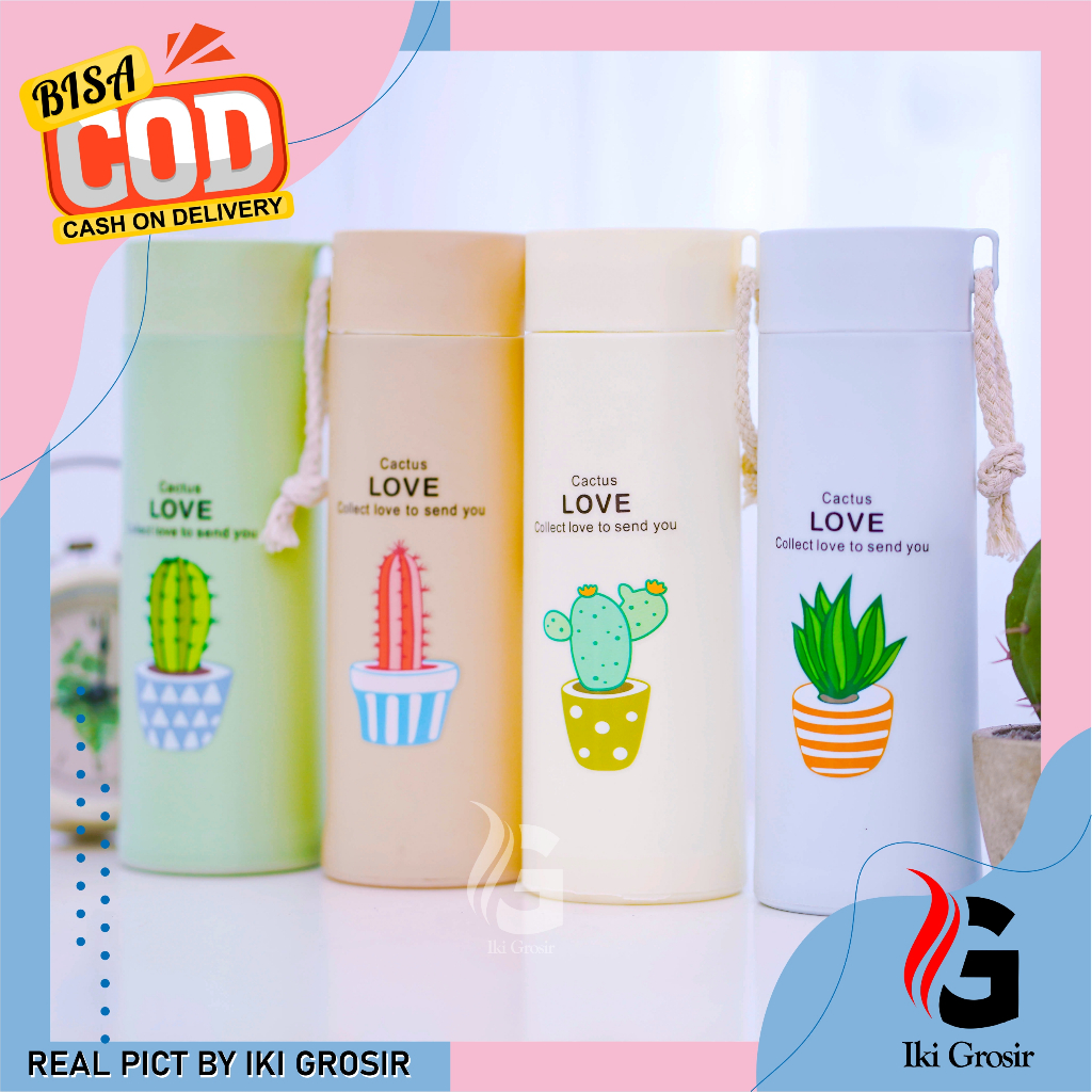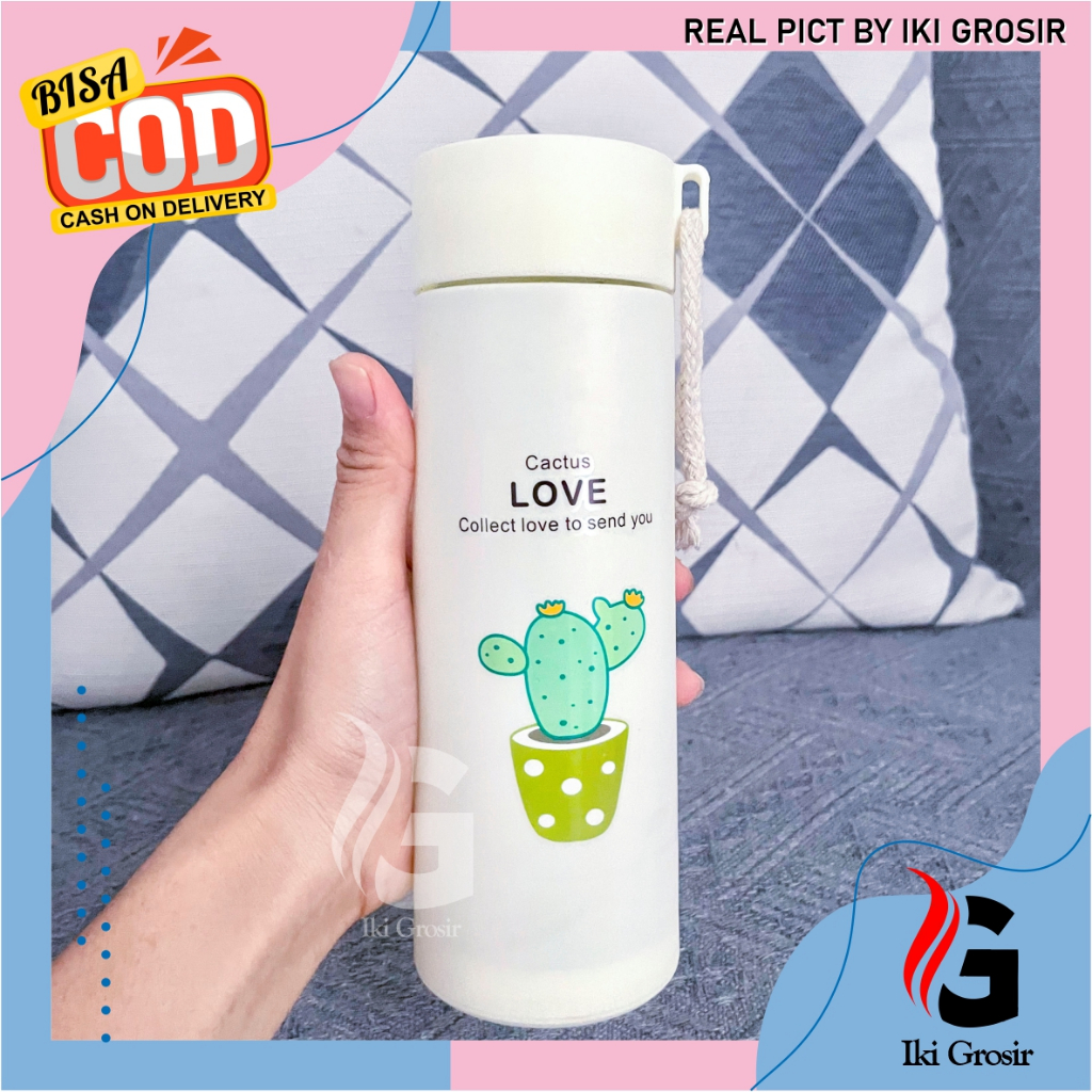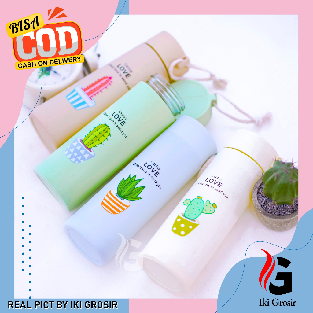Botol Minum Kaca Kaktus Souvenir Tumbler Termos Air Panas Dingin Tanpa Box