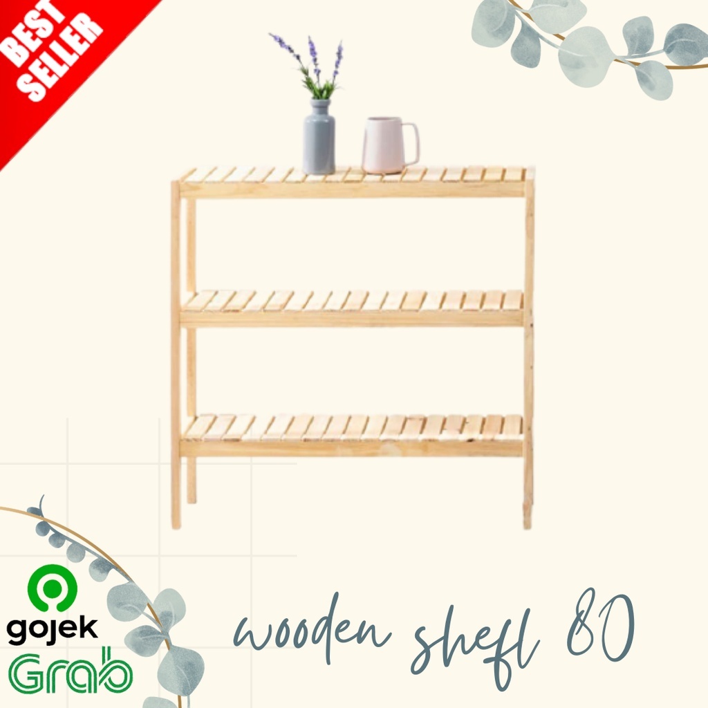 Otto Wooden Shelf 80CM 3 susun / Rak Kayu / Rak Serbaguna / Rak Dapur / Rak Sepatu Kayu /Rak Tama
