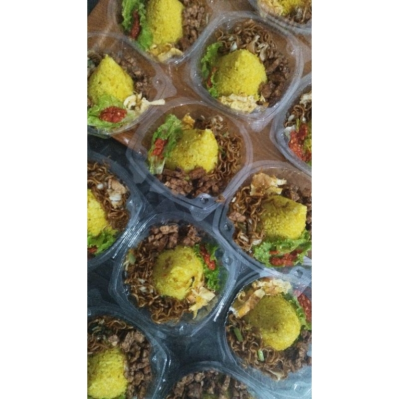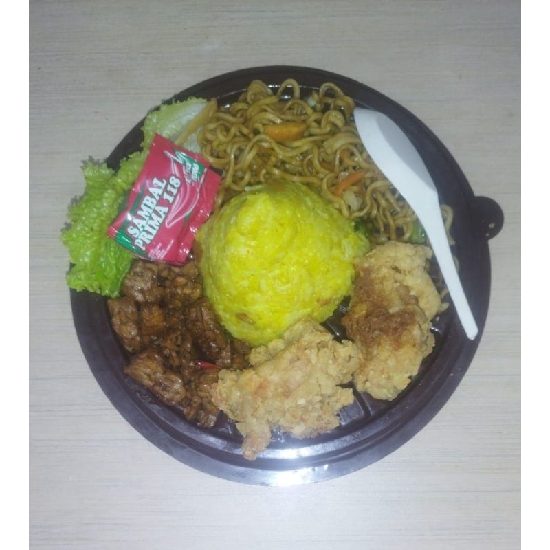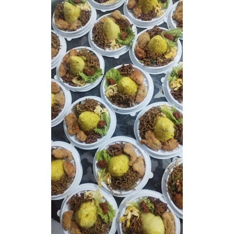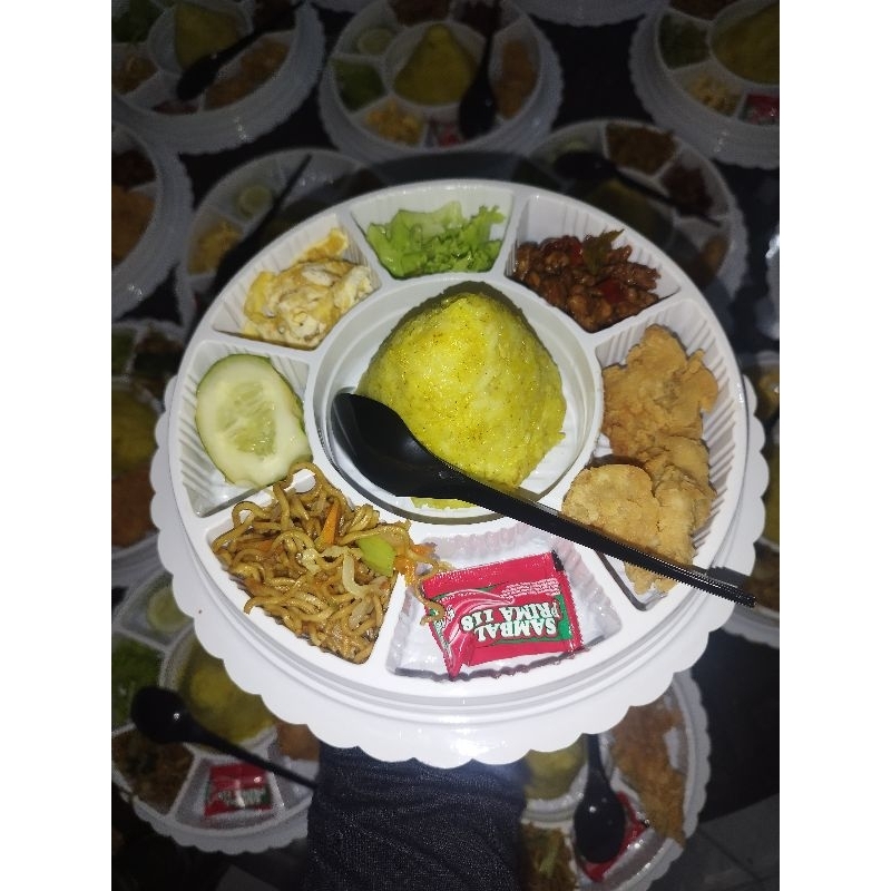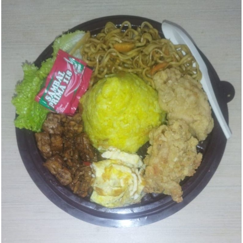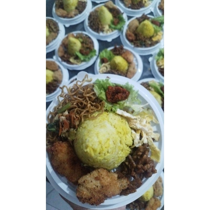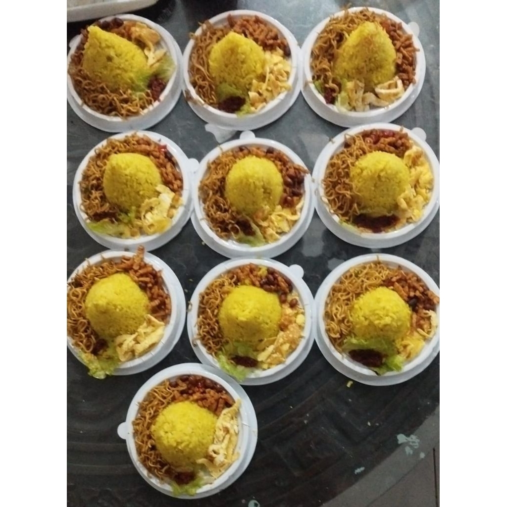 paket tumpeng mini ulang tahun nasi kuning tumini ultah nasi uduk ayam mie bihun tempe telur kicchin al kahfi