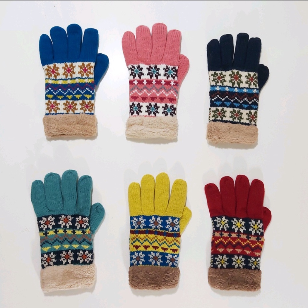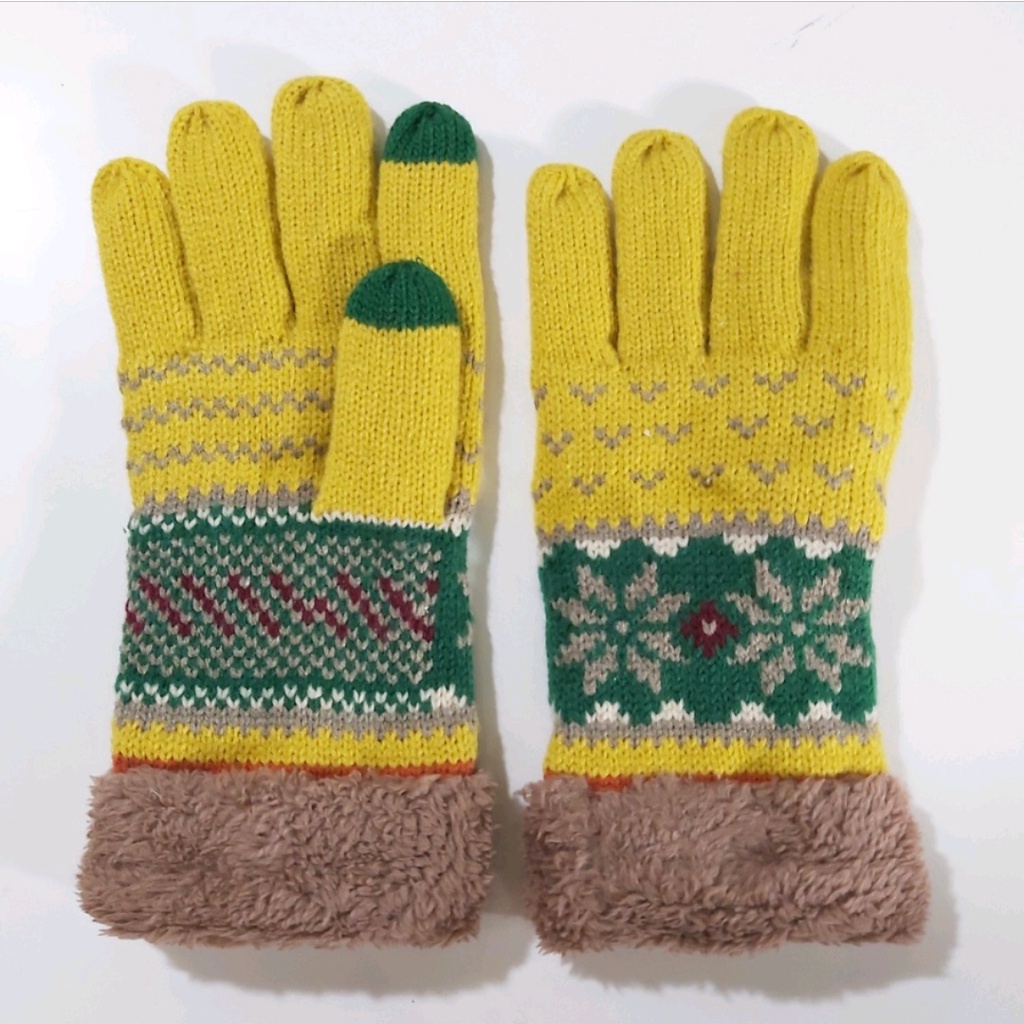 Knitted Sarung Tangan Rajut Tebal Musim Dingin Dewasa Ada Warna Bermotif Ukuran One Size Bagian Dalam Ada Wol Tebal