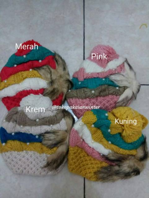 Kupluk Topi Rajut Wol Musim Semi Dan Musim Dingin Wanita Ada Motif Dan Asesoris Bulu