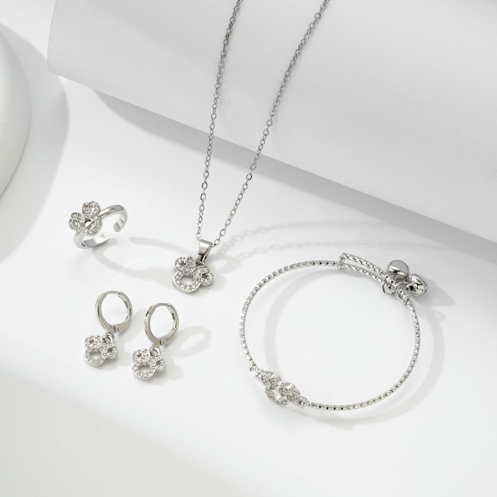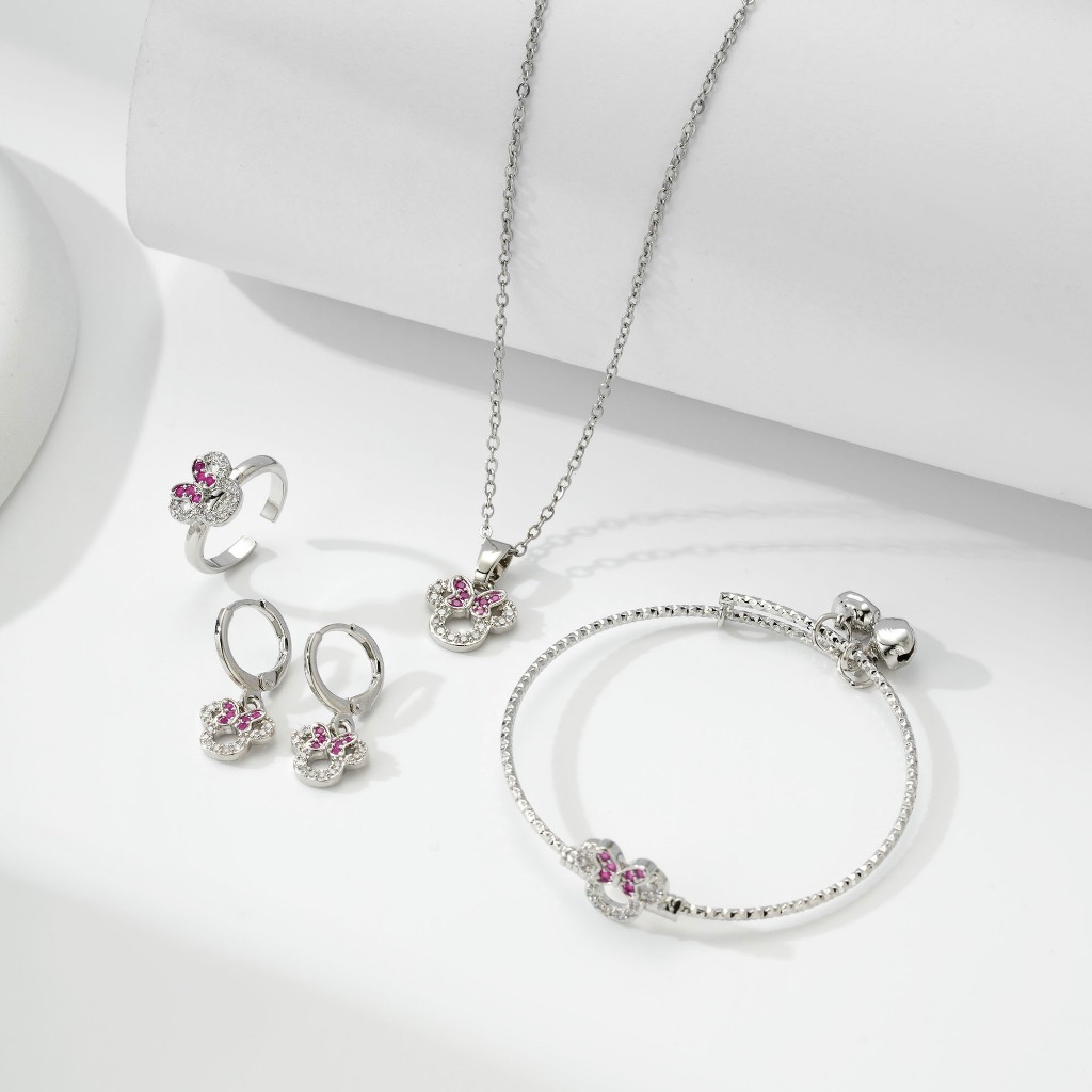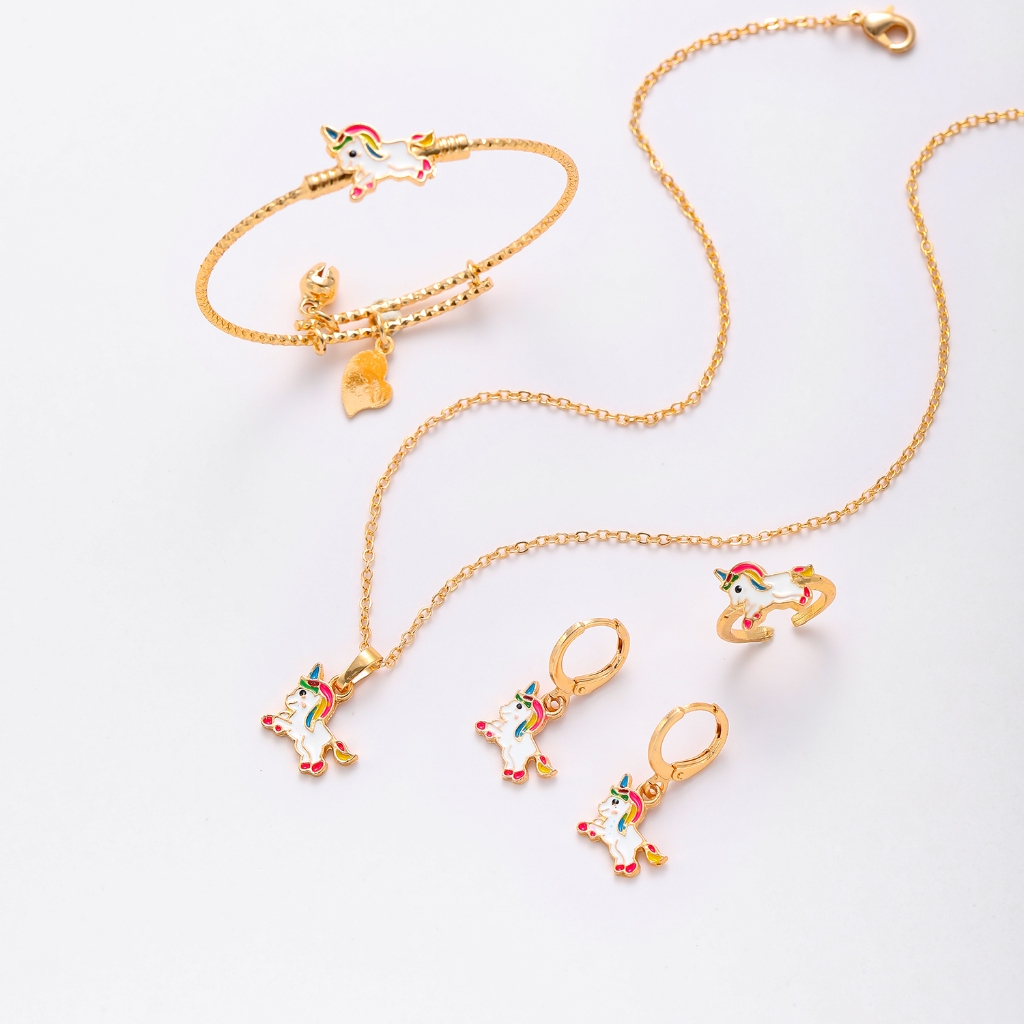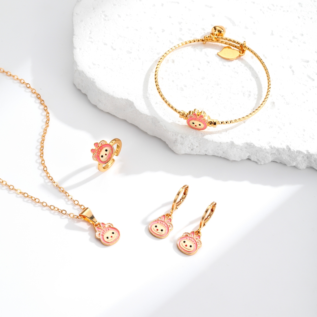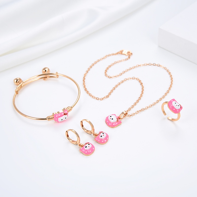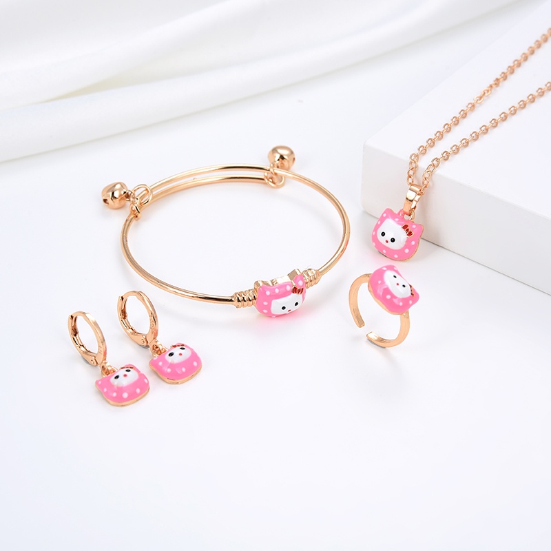 HYL JEWELRY 5pcs Kalung Titanium Set Anak Titanium Anti Karat Asli Perak Set Anting-Anting Berlapis Emas Couple Gelang Gadis Lucu Hello Kitty Hadiah Ulang Tahun Set Perhiasan 18K 20s