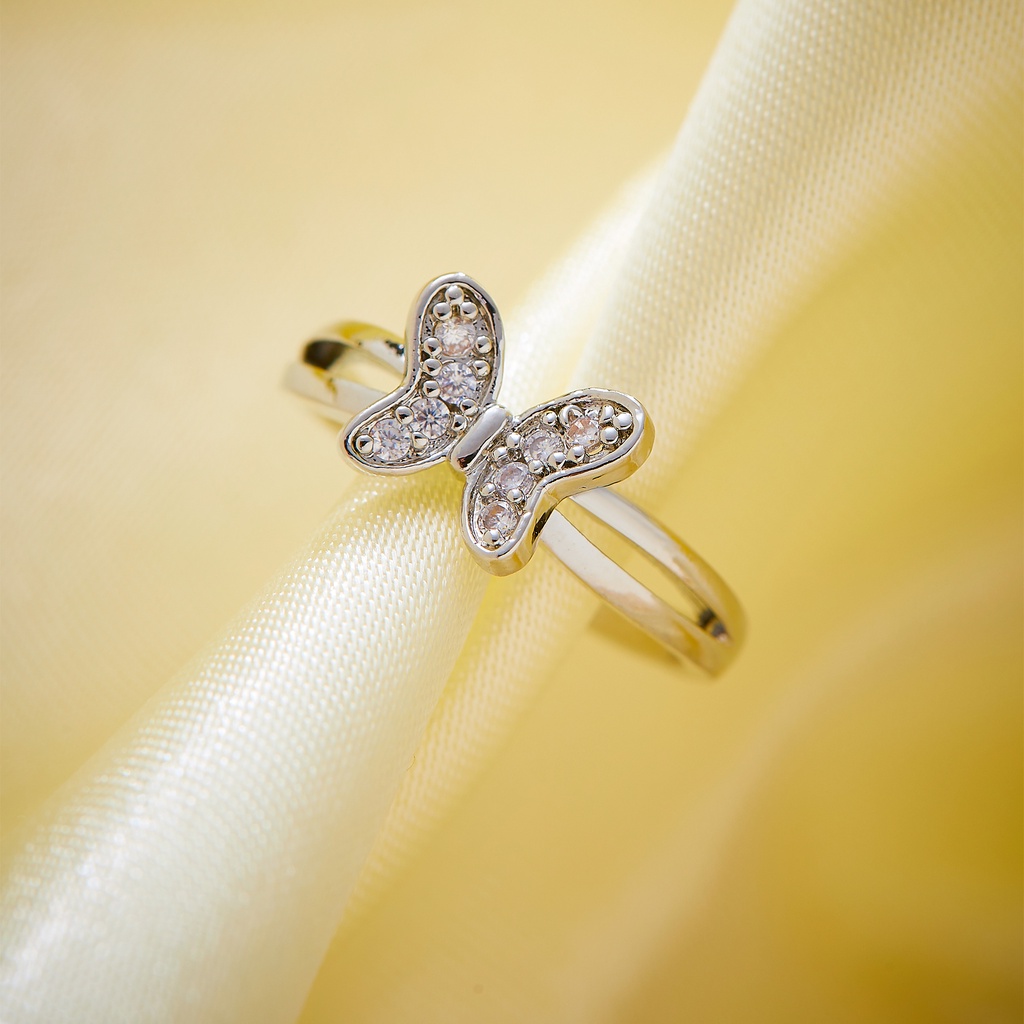 Hyl Jewelry 39J Cincin Titanium Anak Anak Emas Perempuan Laki Laki Insial Kupu Gambar Love Anti Karat Kecil Silver Asli Lucu Kecil Cowok Bayi Karakter