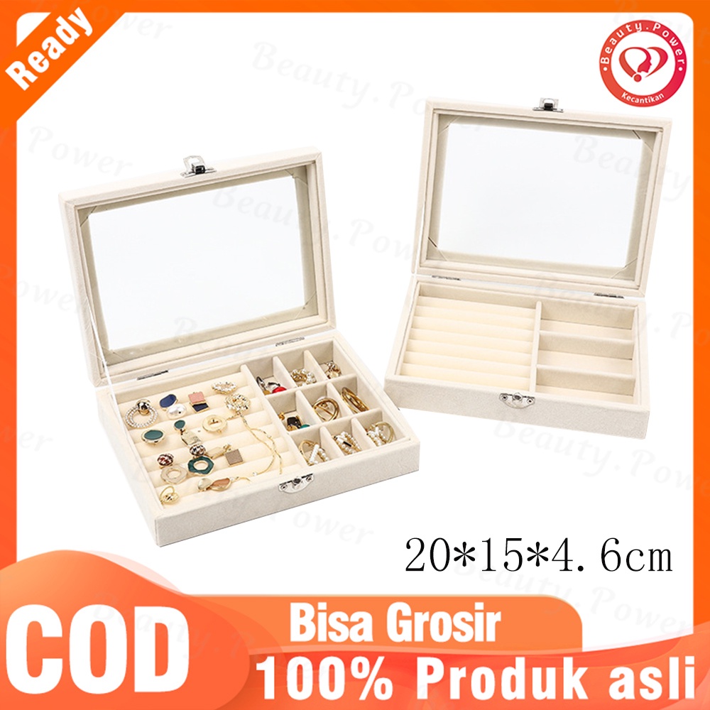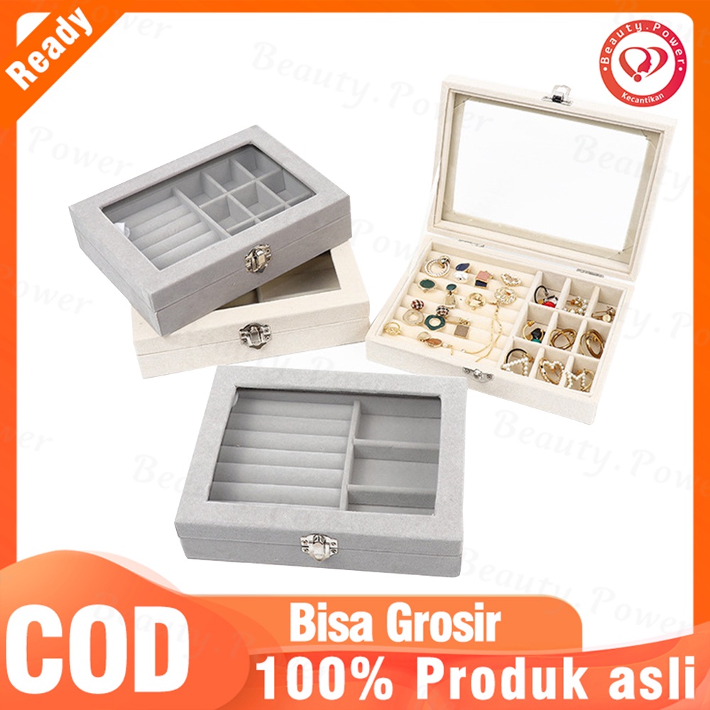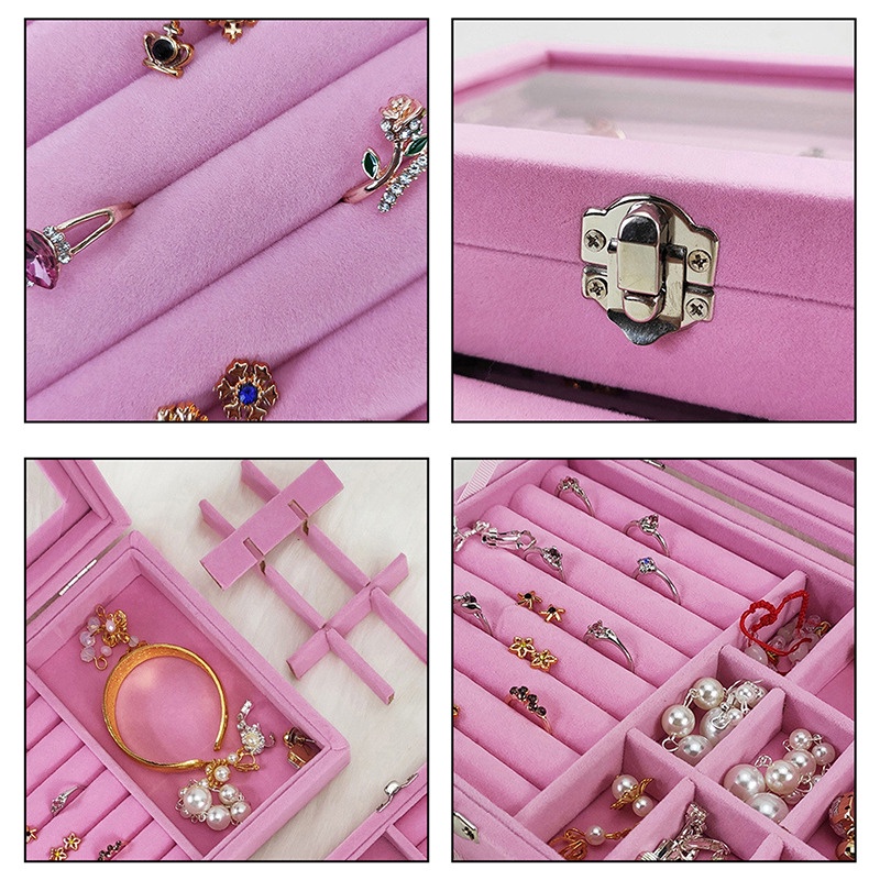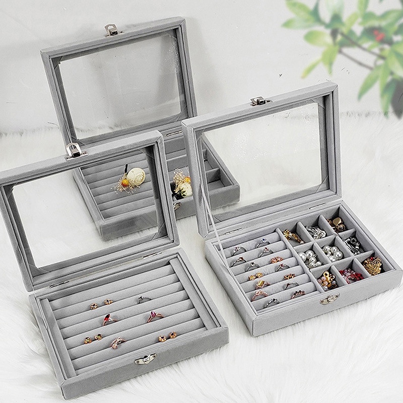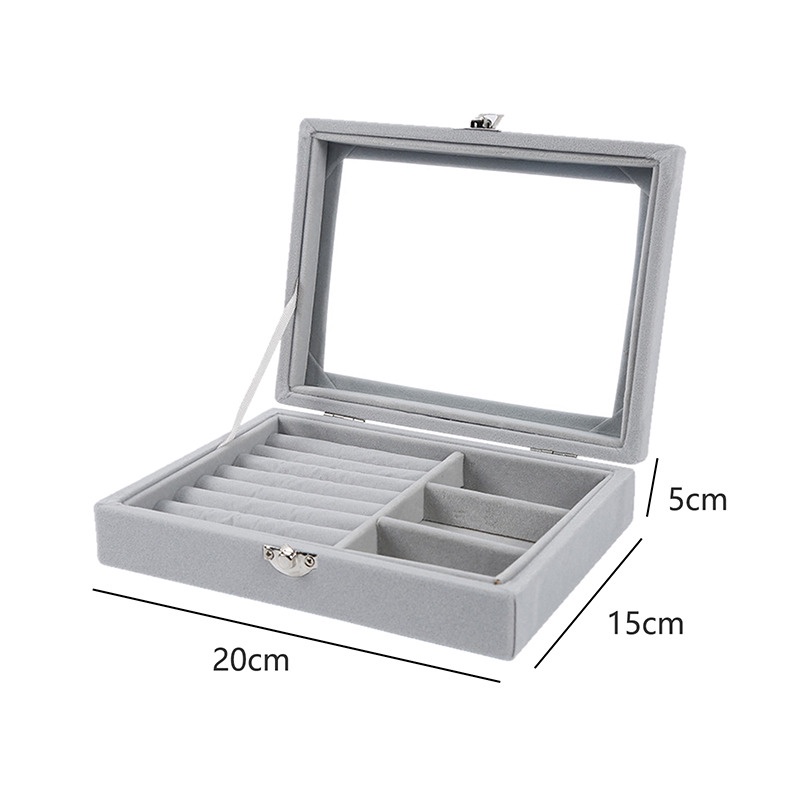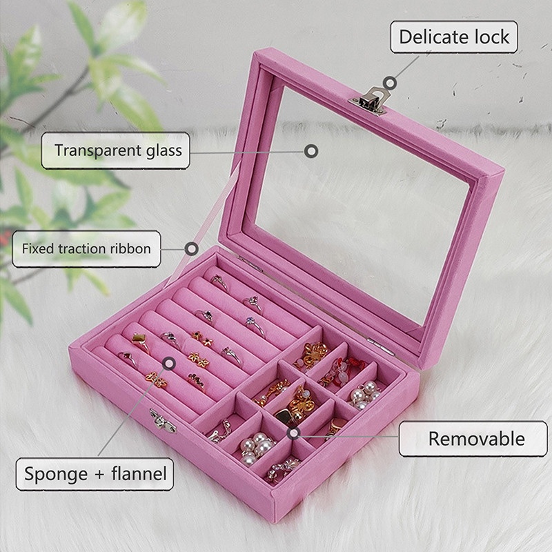 Kotak Perhiasan Bahan Bludru Lembut Tempat Perhiasan Kotak Perhiasan Kaca Travel Jewelry Anting Organizer Perhiasan Box Case Jewelry Kotak