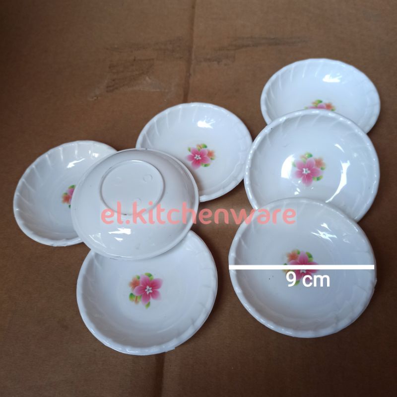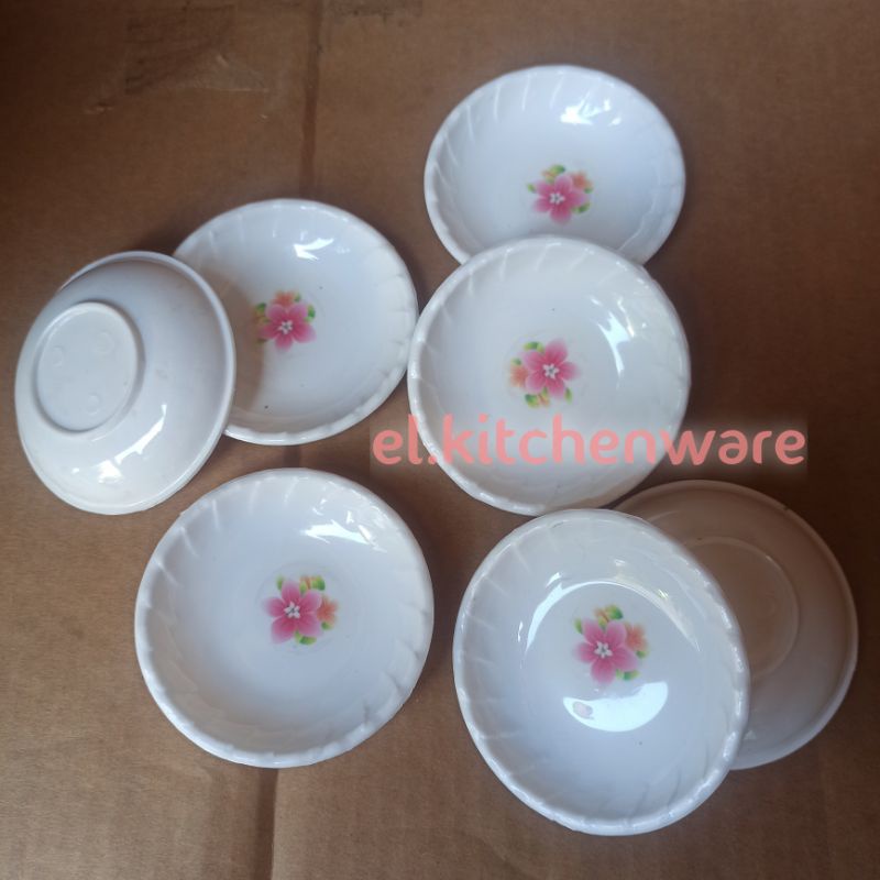 12 pcs Piring mangkuk cabe sambel plastik kecil - stiker bunga cantik - bukan melamine - wadah mangkok mini makanan cocolan sambal cabai saus kecap