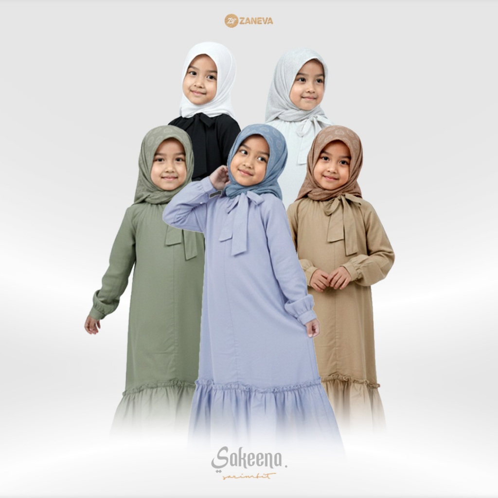 Zaneva Hijab – Sakeena Dress Anak Perempuan Desain Ruffle Sarimbit keluarga Gamis Anak Lebaran