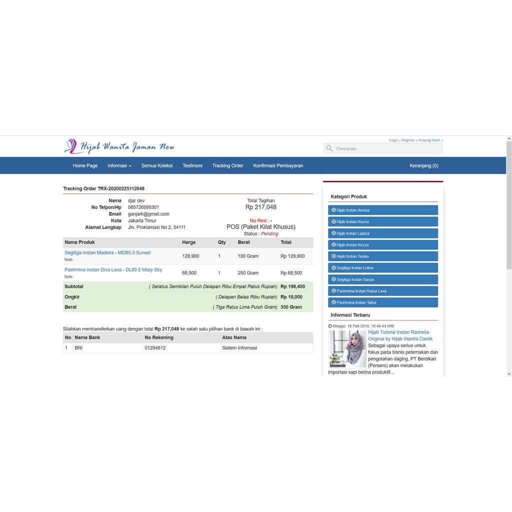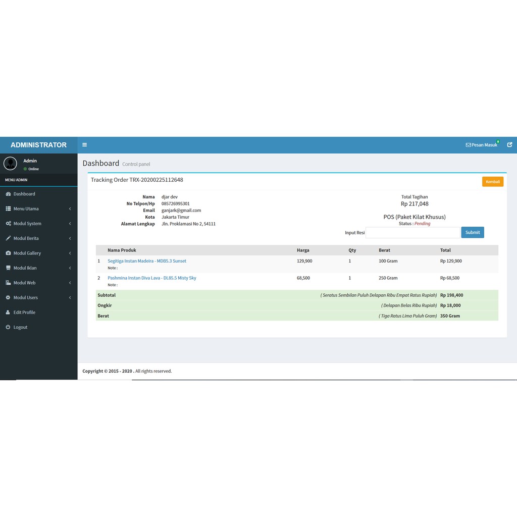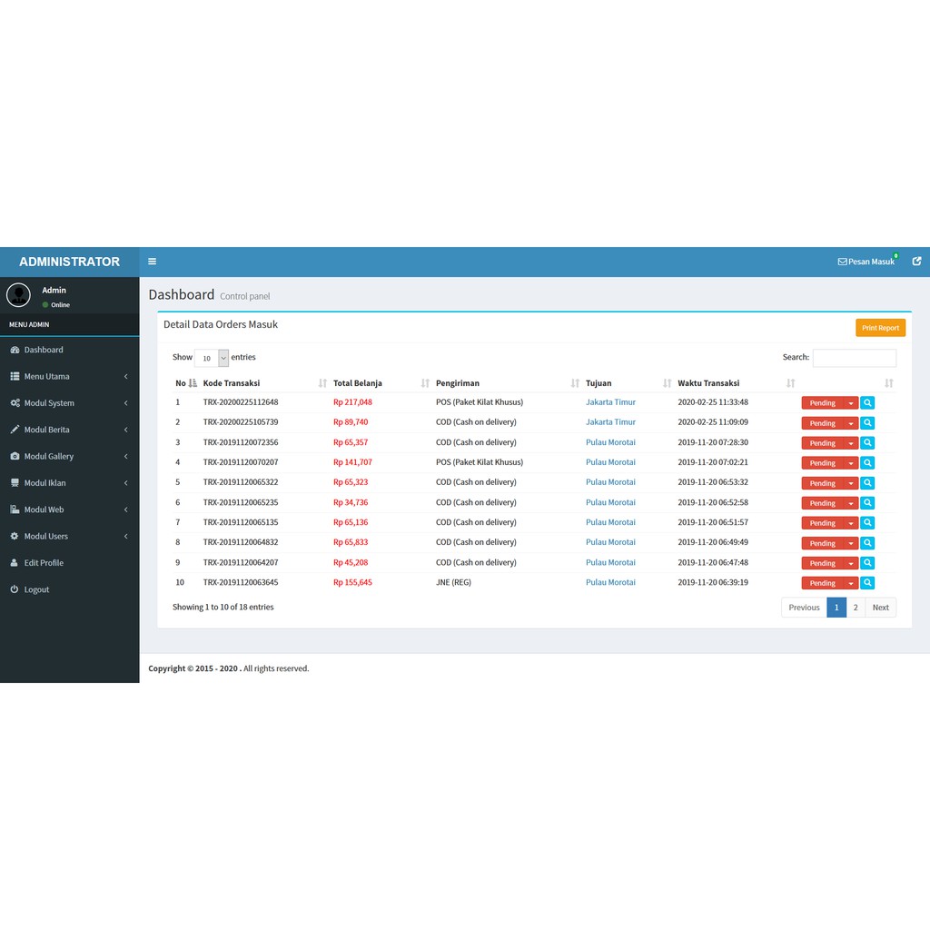 Aplikasi Toko Online Lengkap dengan API Raja Ongkir JNE POS TIKI