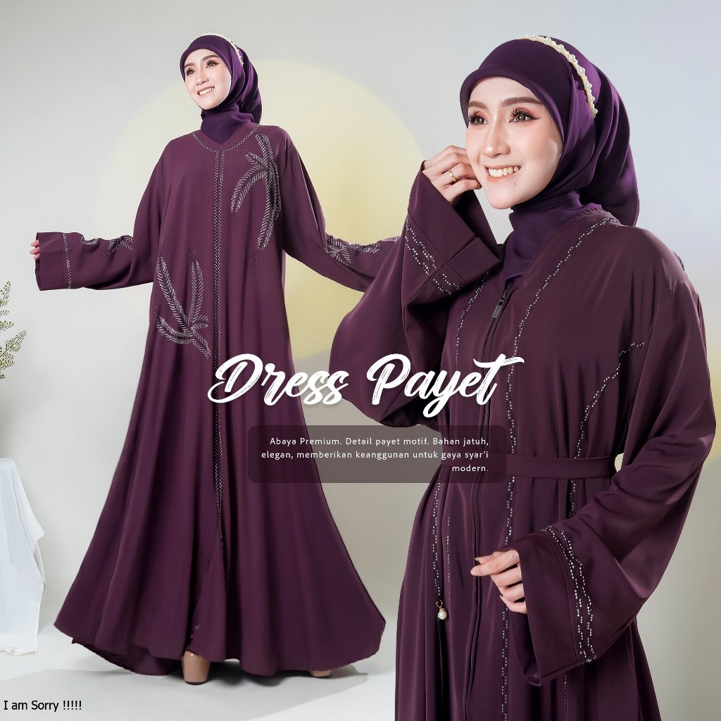 ABAYA WANITA WARNA BURGUNDY MEWAH ABAYA FULL PAYET BAHAN MARBELLA PREMIUM ADEM