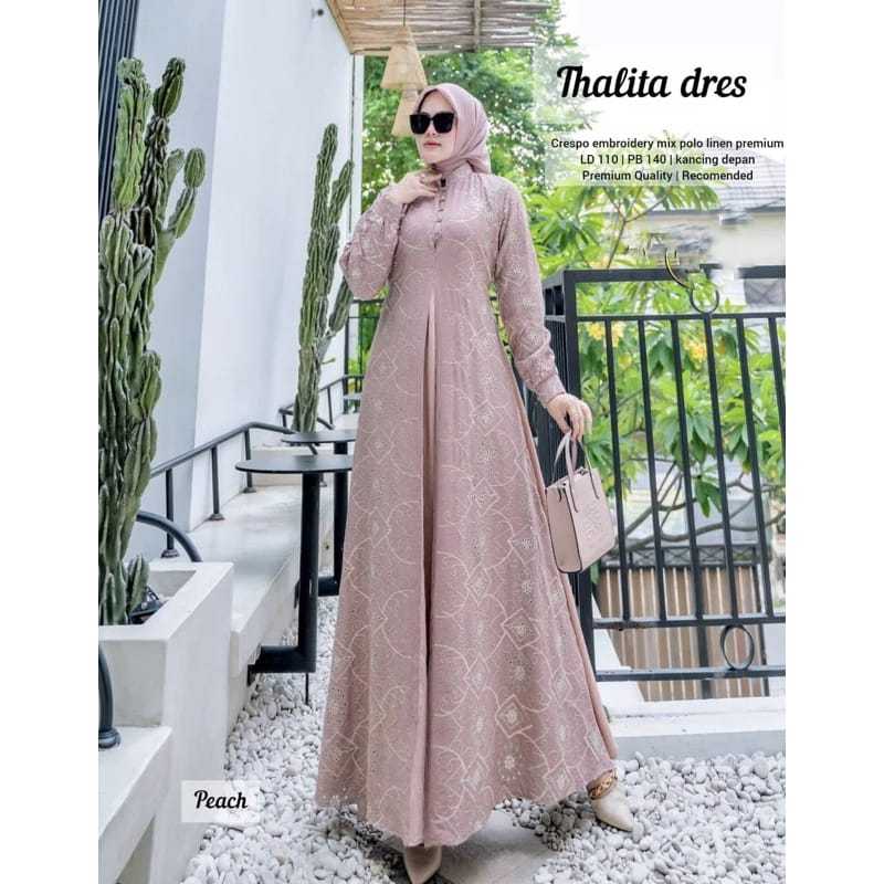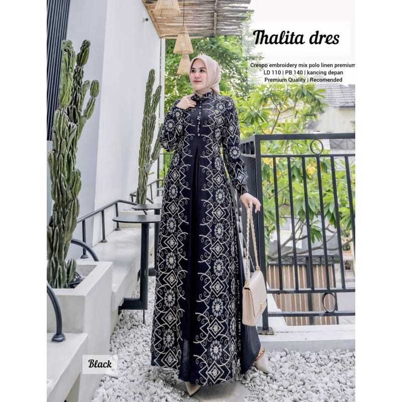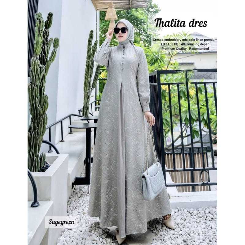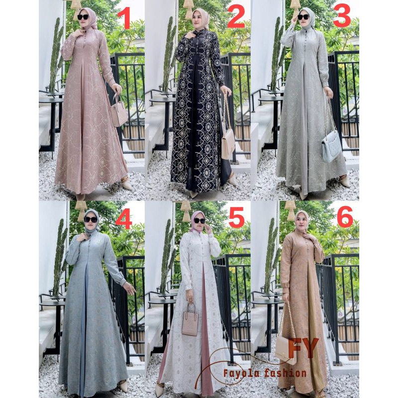 [ Nitaranz ] Fayola Gamis Linen Bordir Crespo Full Kancing Gold by Fayola Fashion