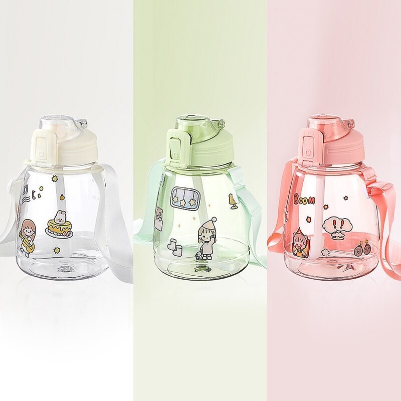 Botol Anak Big Belly Children's Cup Bottle + Stiker / Cangkir Air Minum Jerami Besar 1100 ML - H487