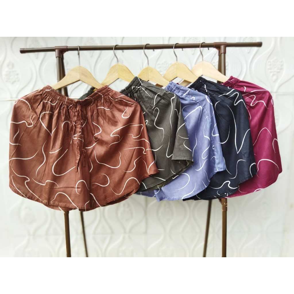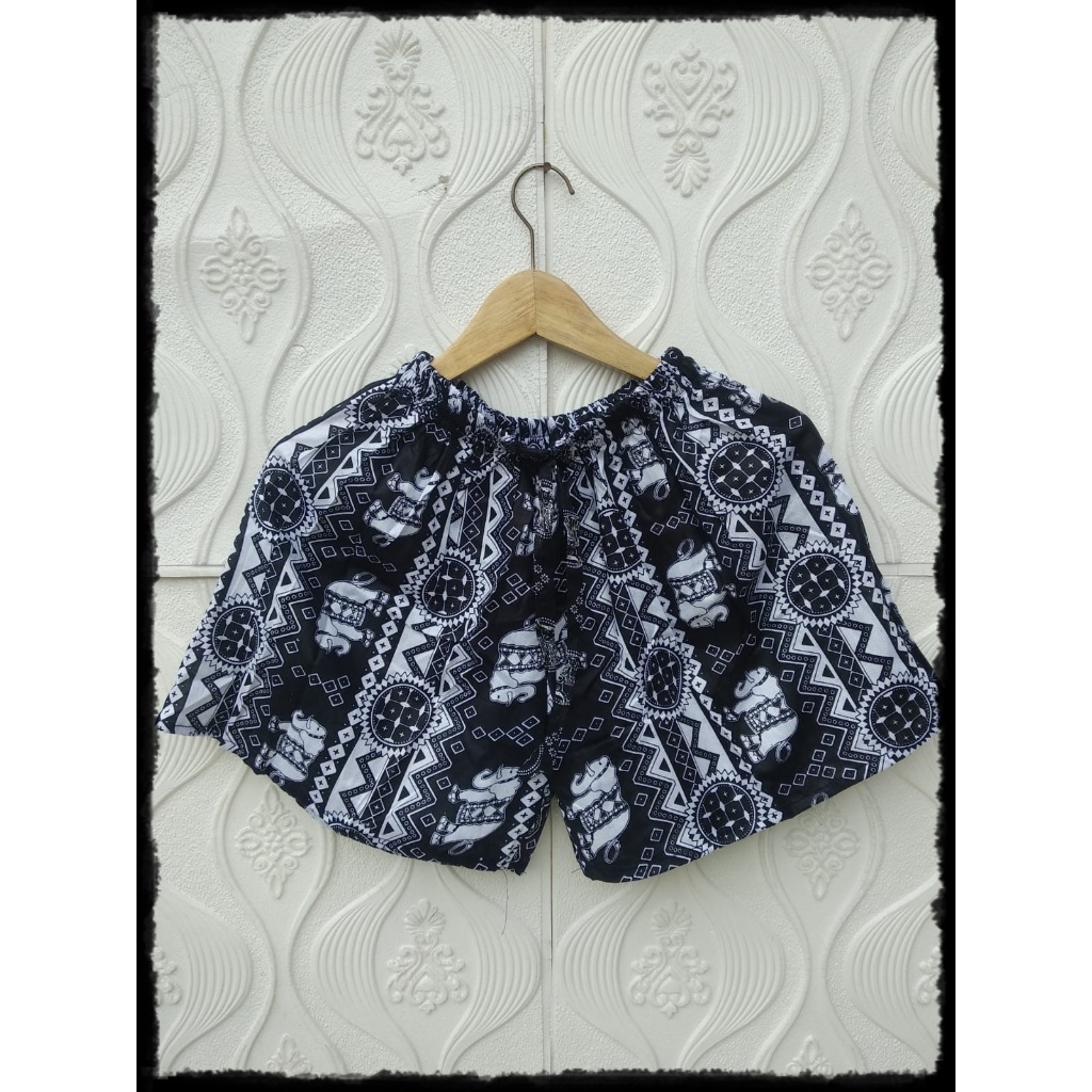 Celana Pendek Rayon Motif Gajah Thailand Pria Dan Wanita Hotpants Dingin, Nyaman Celana Tidur Santai