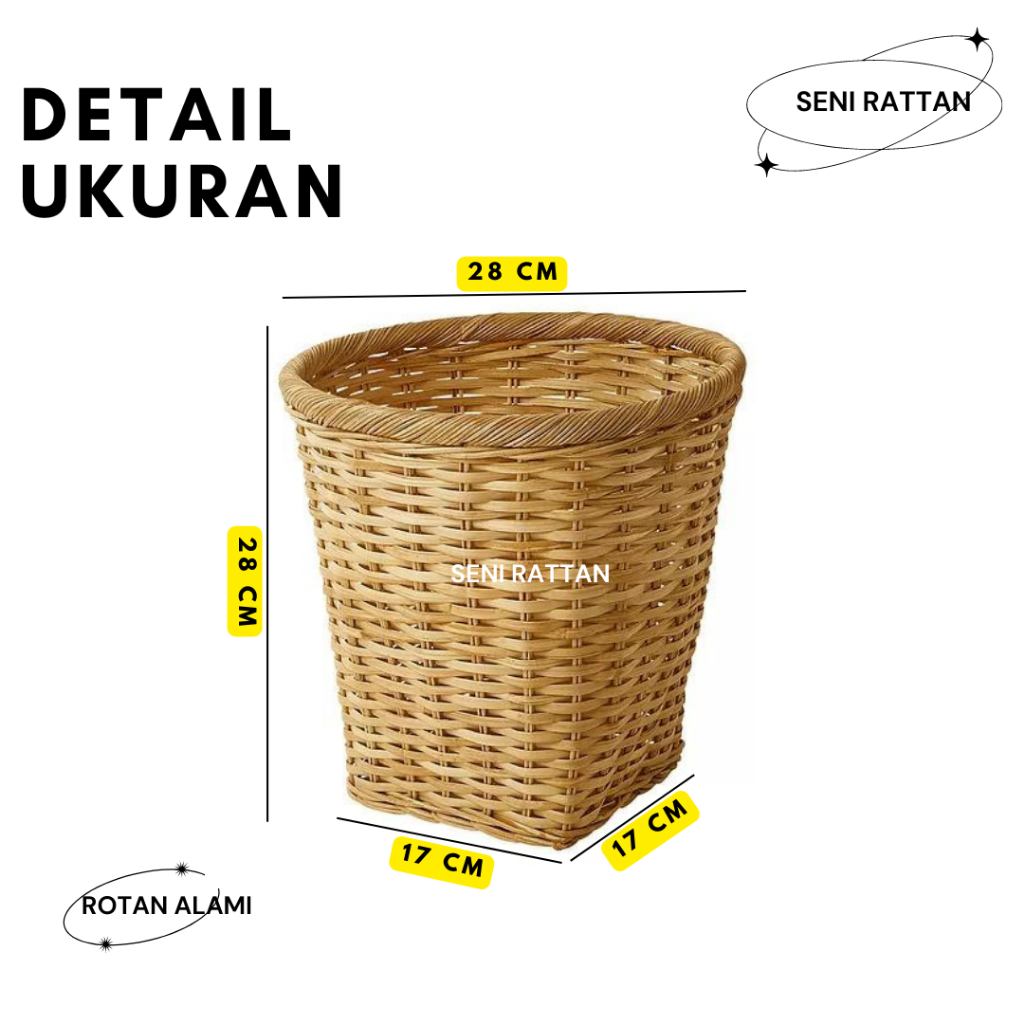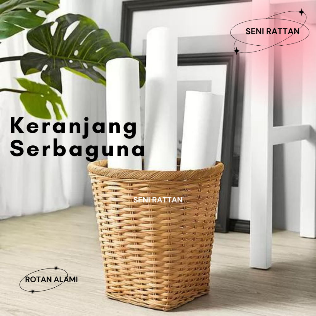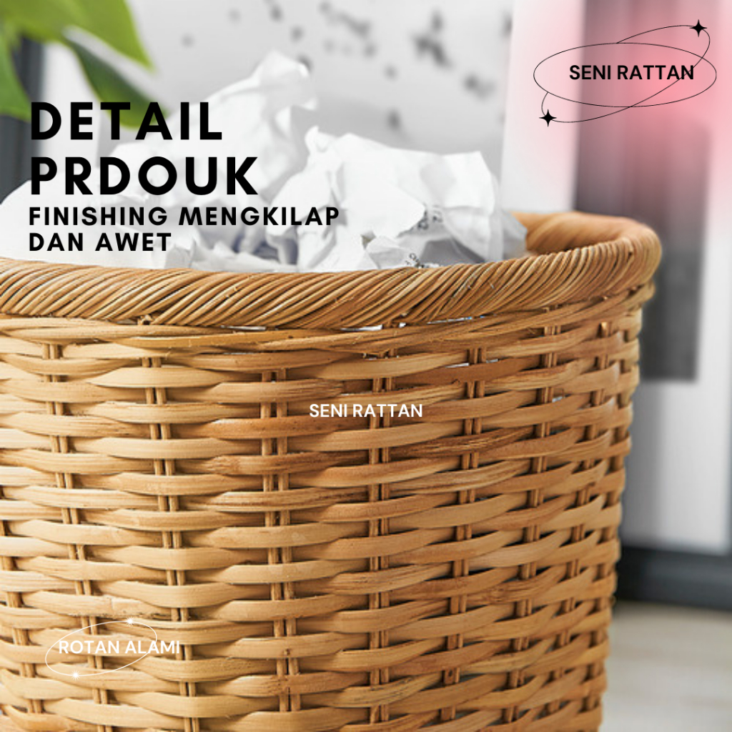Keranjang Sampah Kering / Keranjang Serbaguna Trumis Buatan Tangan Rotan Alami Finishing Mengkilap dan Awet SISA EXPORT