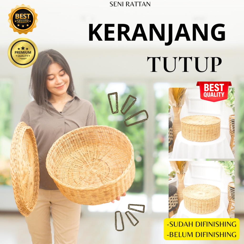 Keranjang Serbaguna Bentuk Bulat Dengan Tutup Ukuran Besar