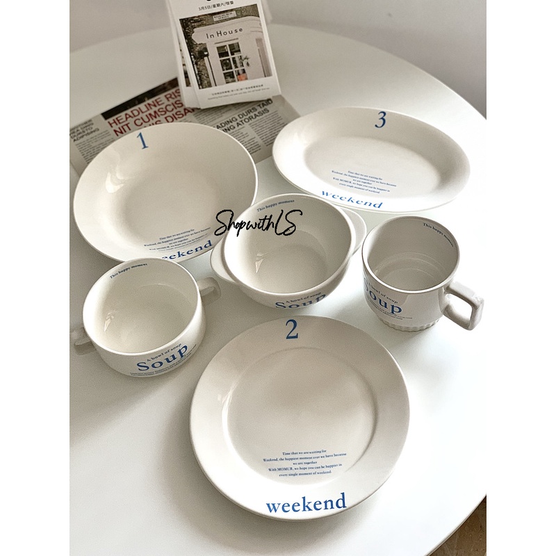 Weekend Series/Piring Cangkir Mangkuk Ala Korea/Piring Vintage/Aesthetic Korean Plate/Aesthetic Tableware Korean Style/Home Cafe Tableware