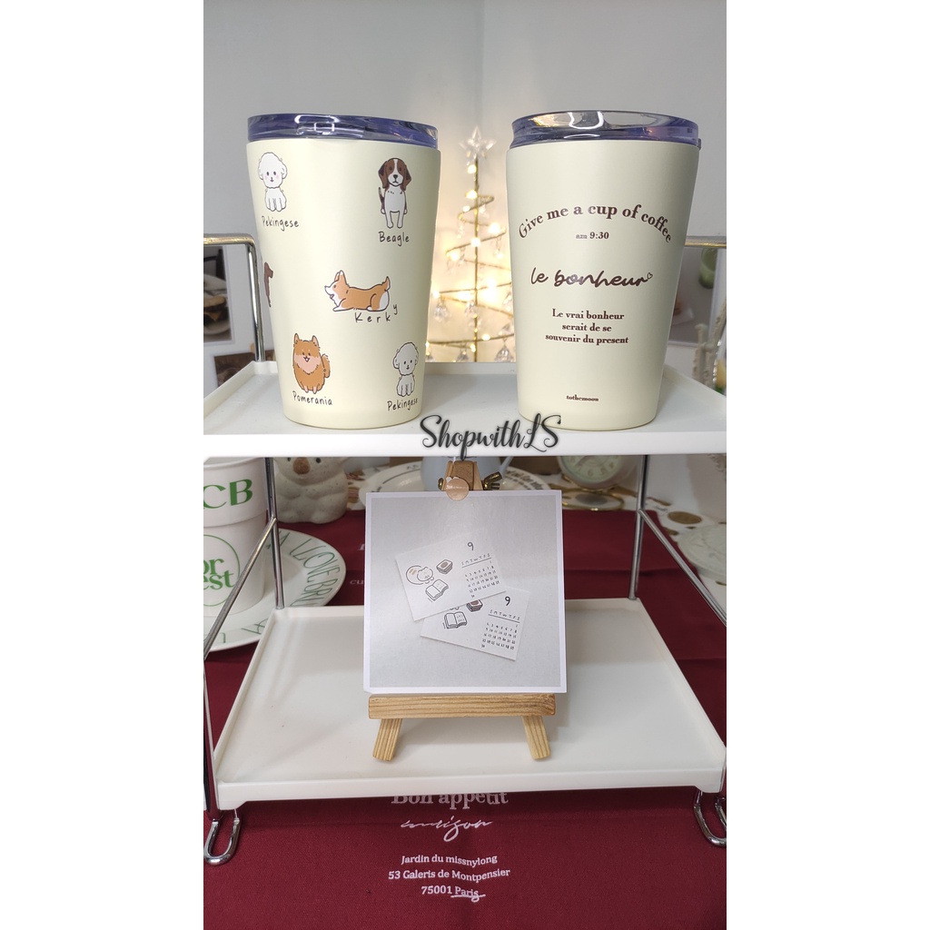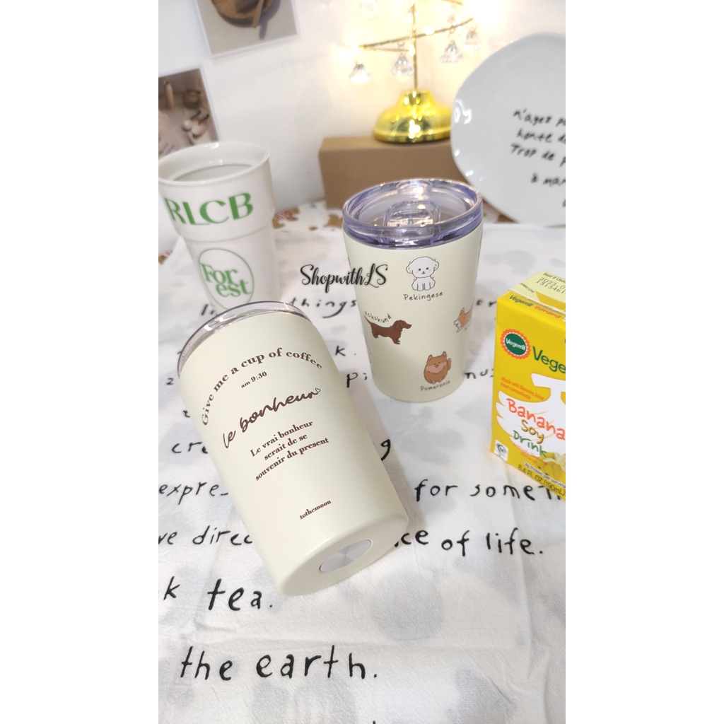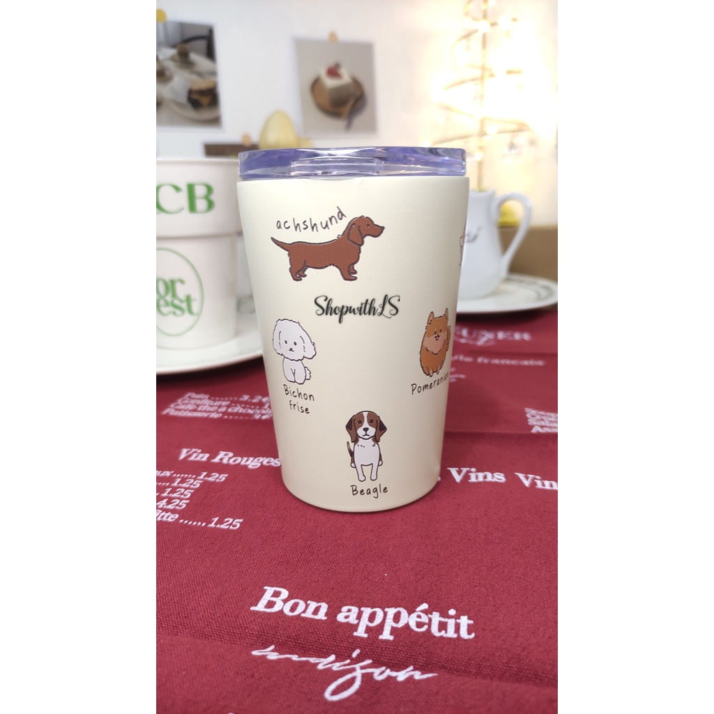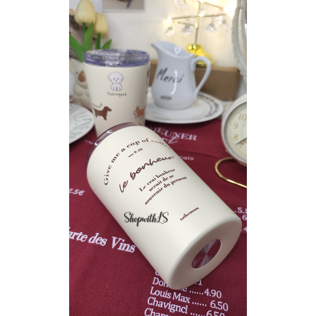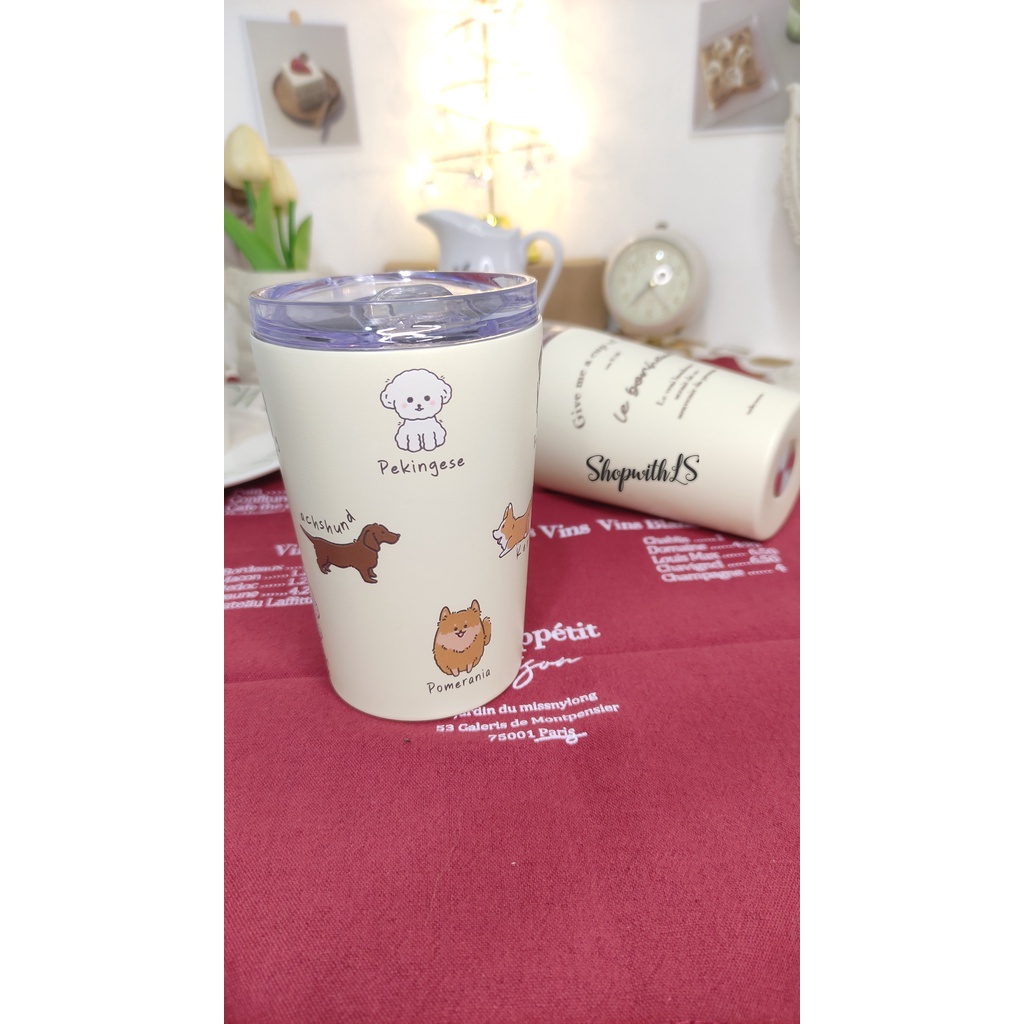 Le Bonheur & Cute 3D Dogs Tumbler (360 ML) /Ivory Tumbler/Aesthetic Ivory Tumbler/Aesthetic Stainless Tumber/Gelas Tumbler Estetik/Tumbler Ala Korea/Korean Style Tumbler