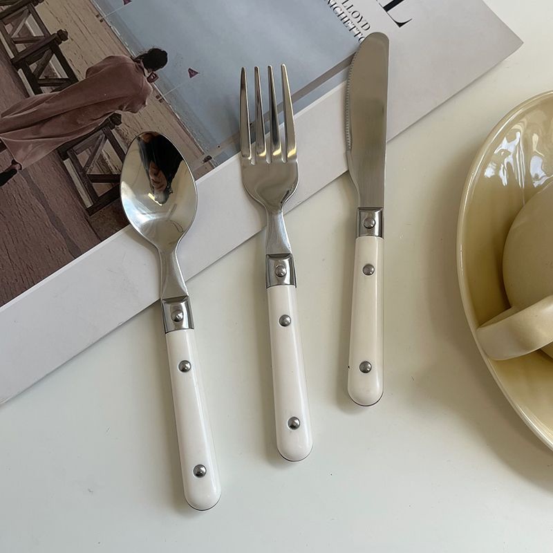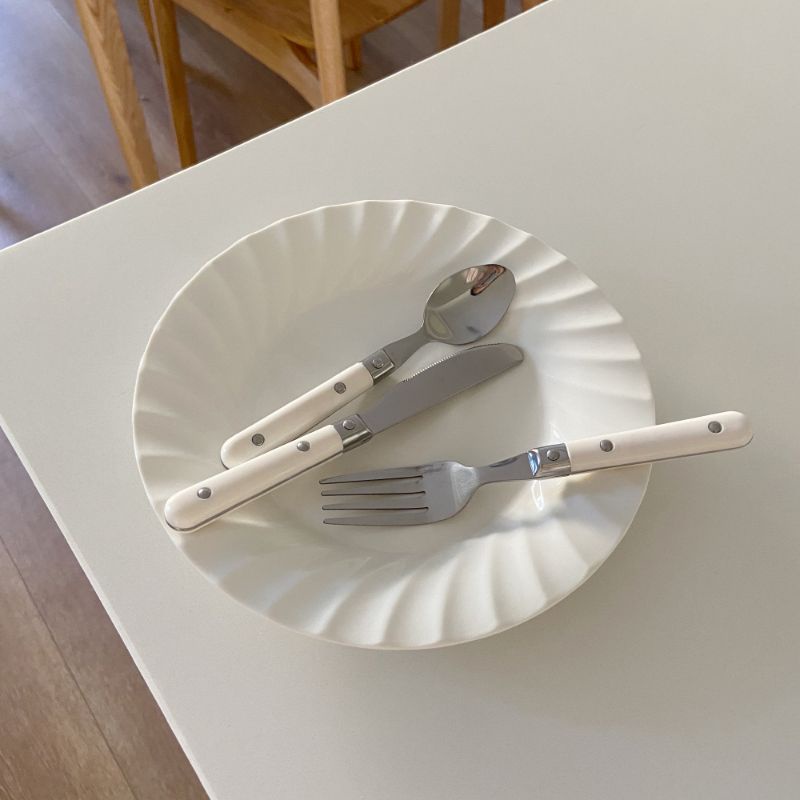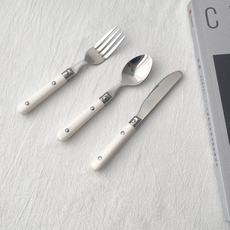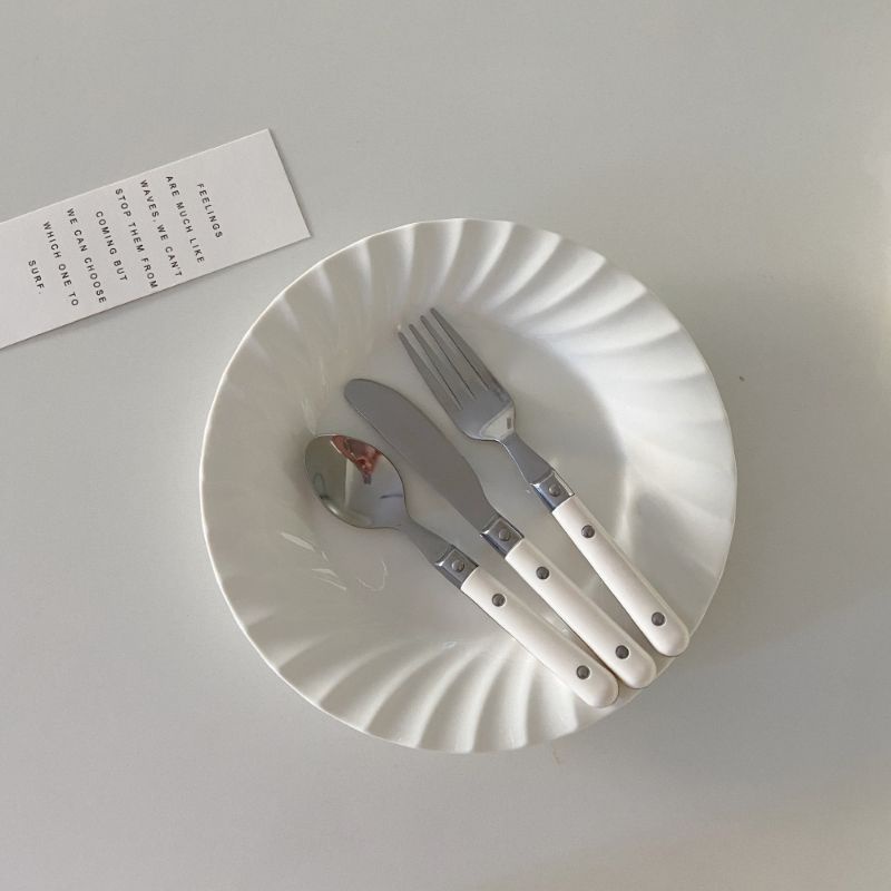 Sendok Putih Set Estetik/Aesthetic White Cutlery Set/Sendok Garpu Putih Estetik/Korean Style Cutlery Set/Sendok Set Ala Korea/Homecafe Props/Properti Foto/Sendok Putih