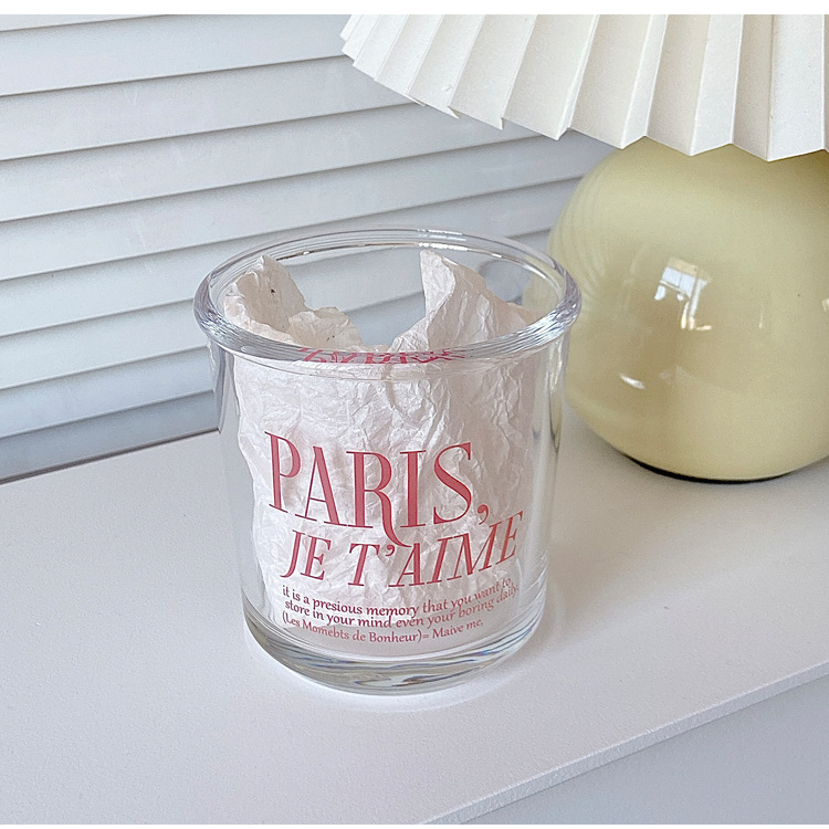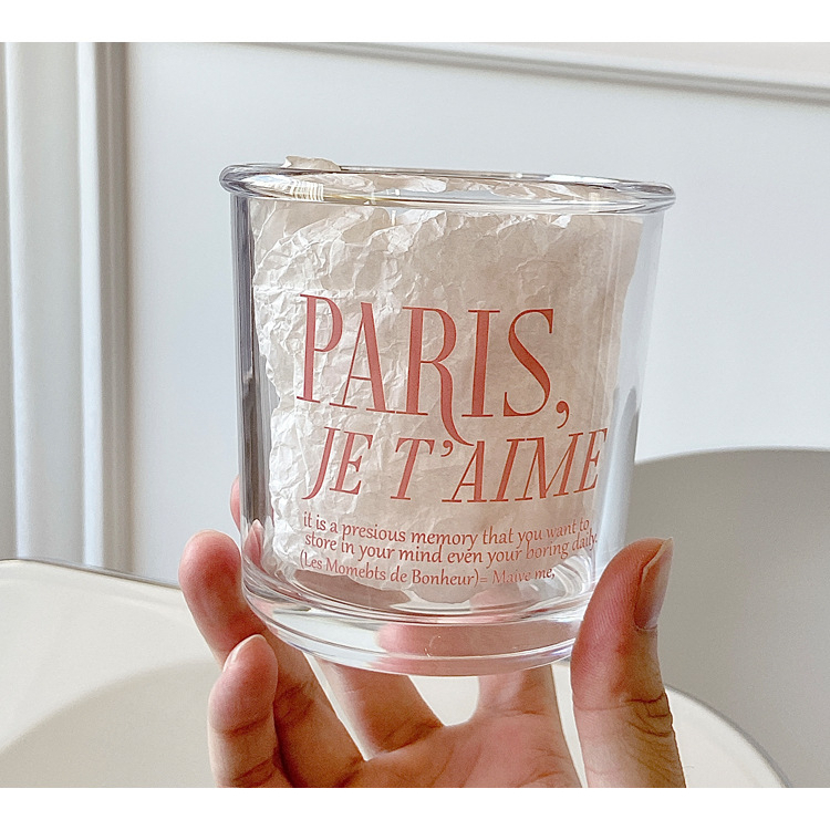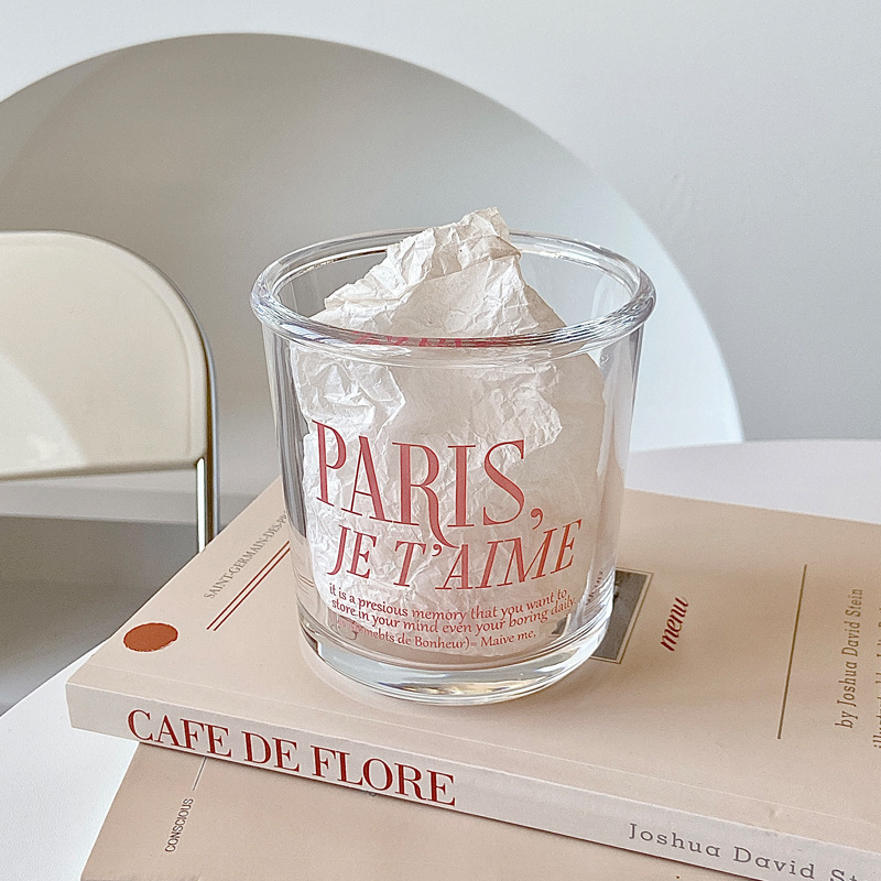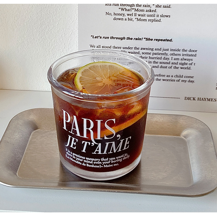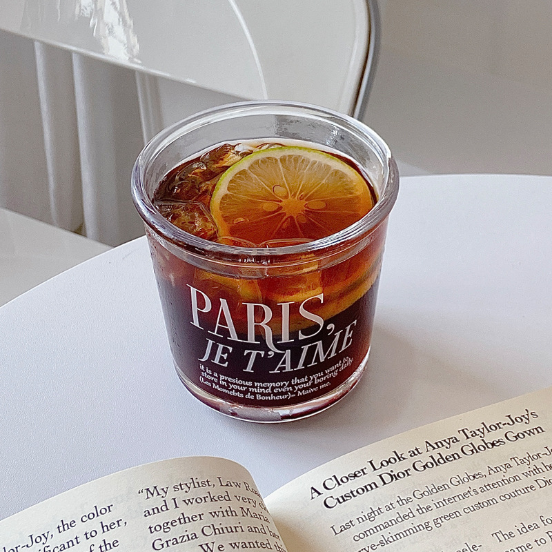 PARIS JE'TAIME Glass Cup/French Letter Glass/Gelas Kaca Estetik/Aesthetic Glass/Home Cafe Glass/Gelas Home Cafe/Gelas Korea/Gelas Kaca Korea/Korean Glass/Gelas Kaca Cantik/Gelas Kaca Murah