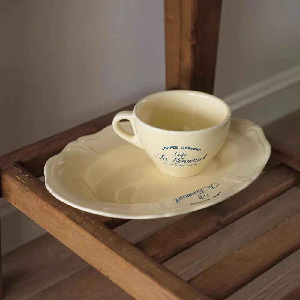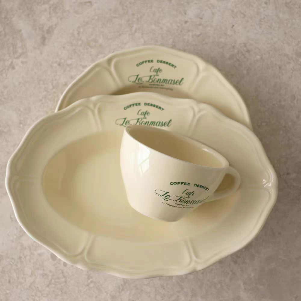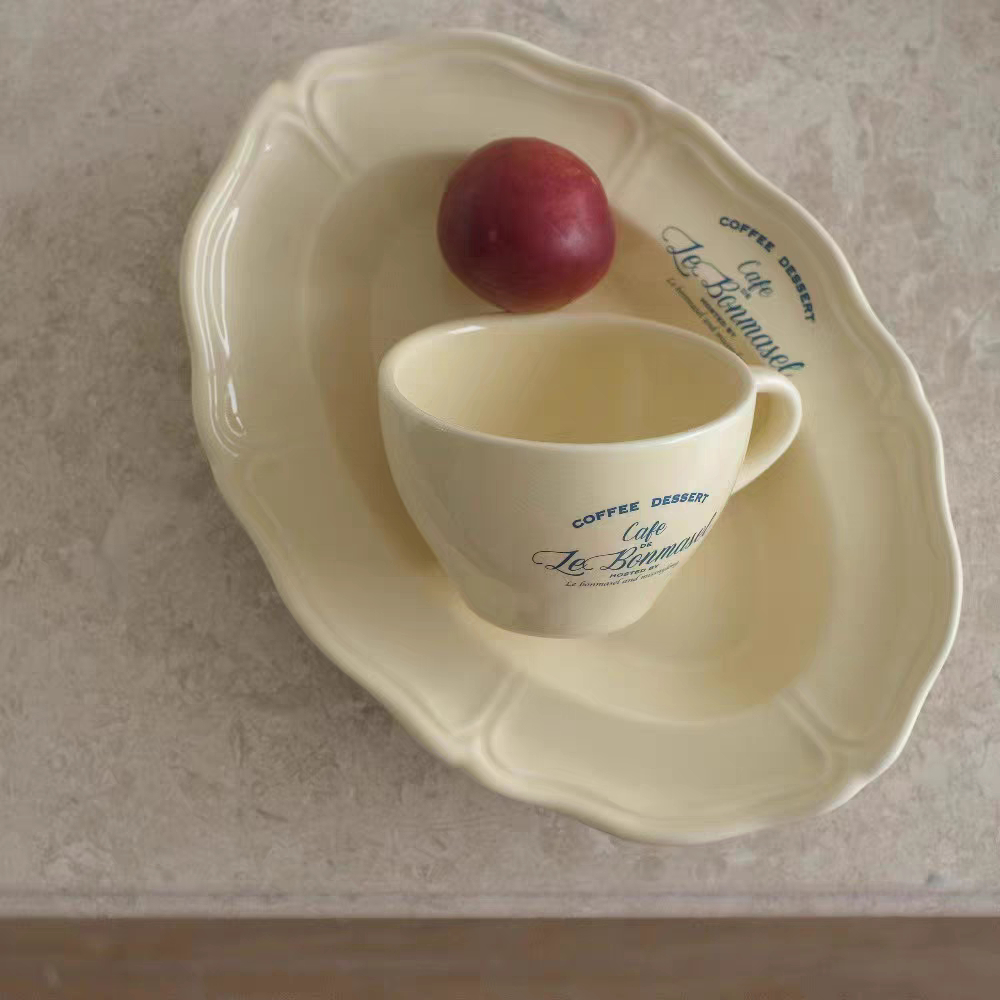 COFFEE DESSERT SERIES/Piring Aesthetic Ala Korea/Piring Vintage/Piring Kaca Korea Tulisan Perancis/French Letter Plate/Aesthetic Korean Plate/Piring Estetik Korea/Piring Keramik Lucu/Cute Ceramic Plate/Korean Plate/Vintage Plate/Home Cafe Plate