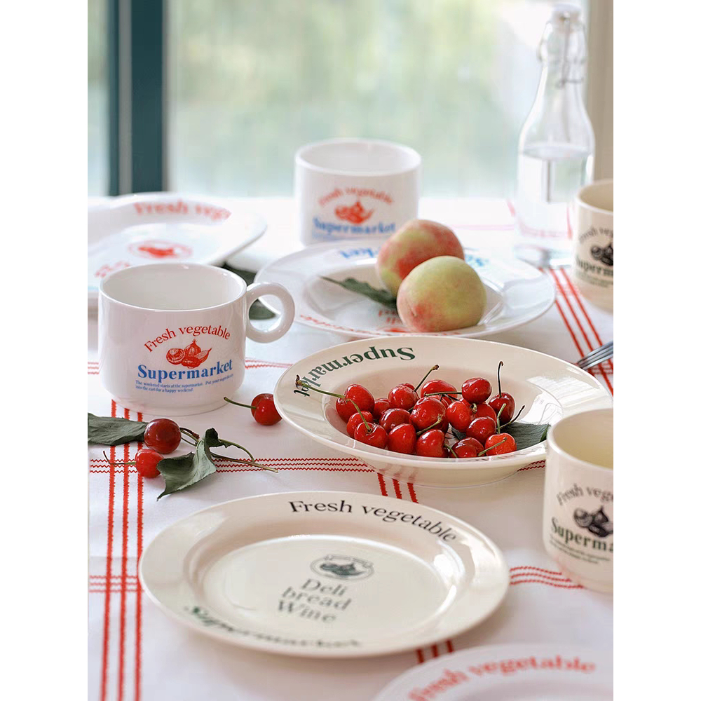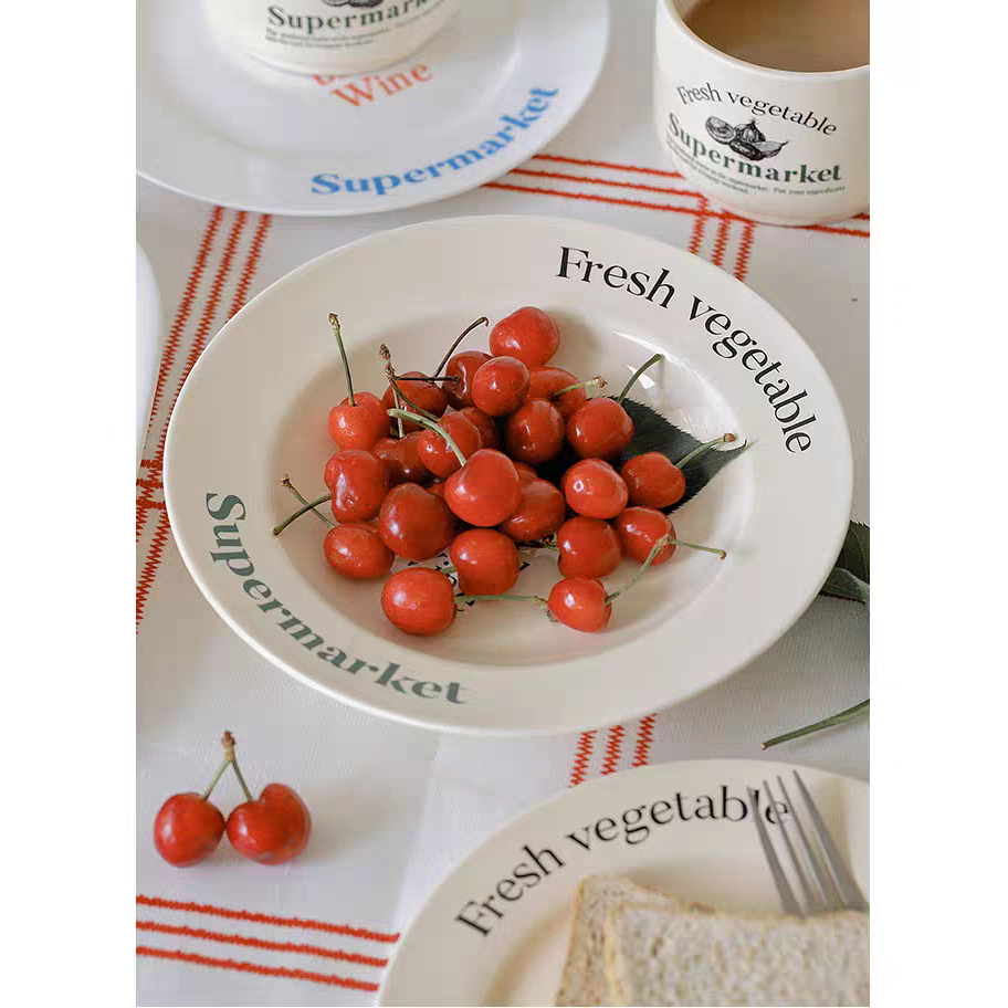 DELI SERIES/Piring Aesthetic Ala Korea/Piring Vintage/Piring Kaca Korea Tulisan Perancis/French Letter Plate/Aesthetic Korean Plate/Piring Estetik Korea/Piring Keramik Lucu/Cute Ceramic Plate/Korean Plate/Vintage Plate/Home Cafe Plate
